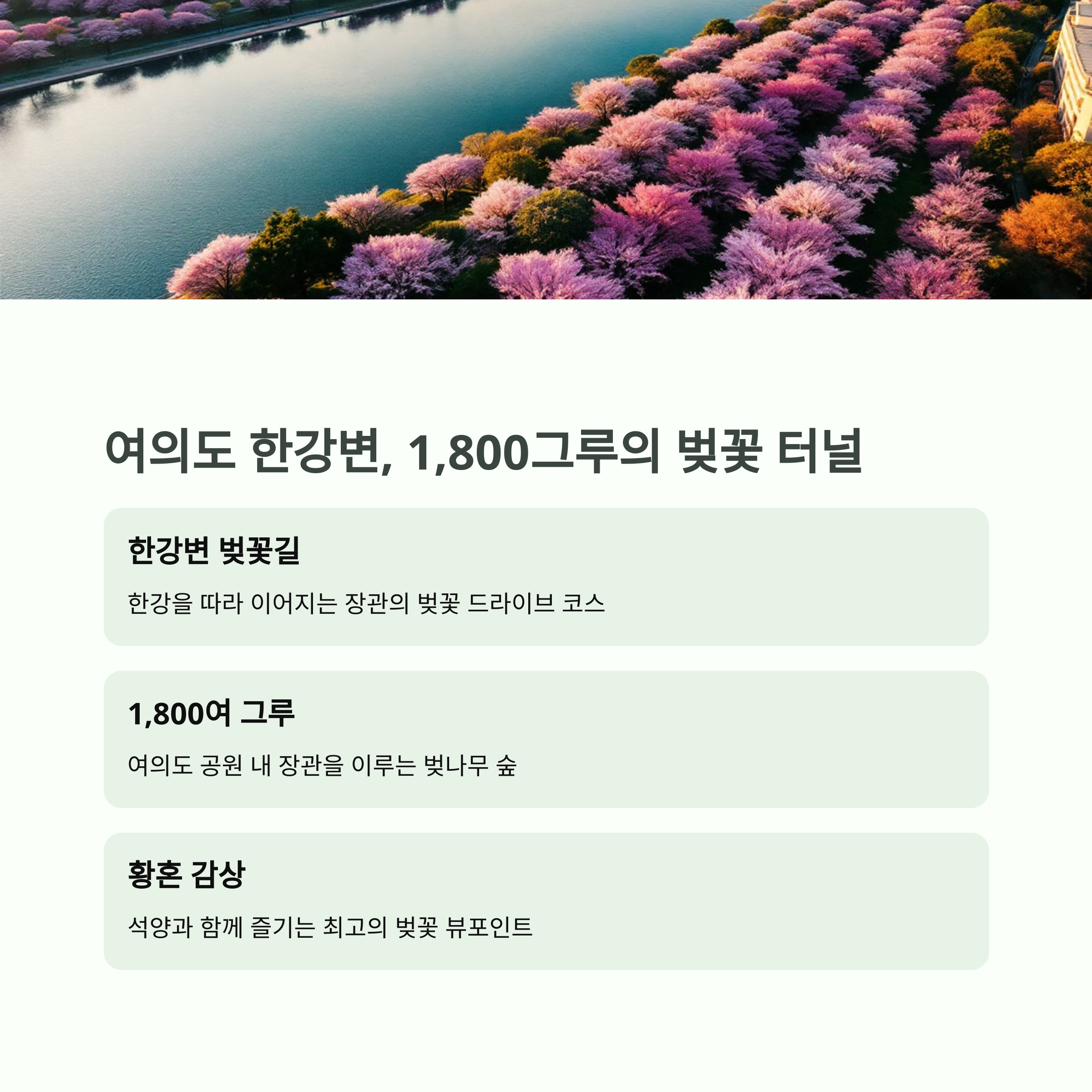 | 남산공원, 여의도공원, 서울숲 | 한옥빌리지카페, 페탈카페 (서울숲 인근) | 망원한강공원 (벚꽃 + 한강 피크닉) |
