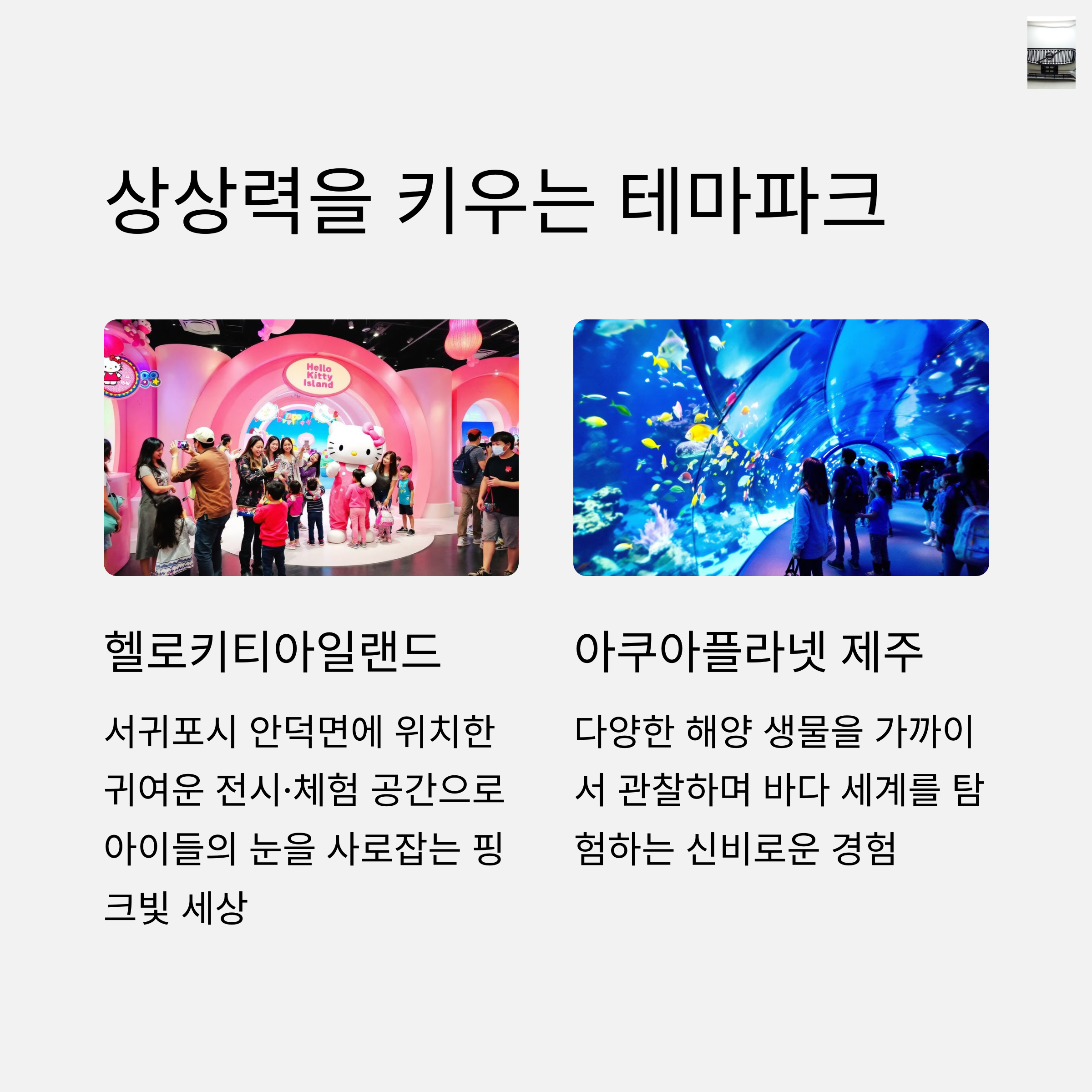 실내 키즈 명소 뽀로로파크, 헬로키티아일랜드, 아쿠아플라넷 등