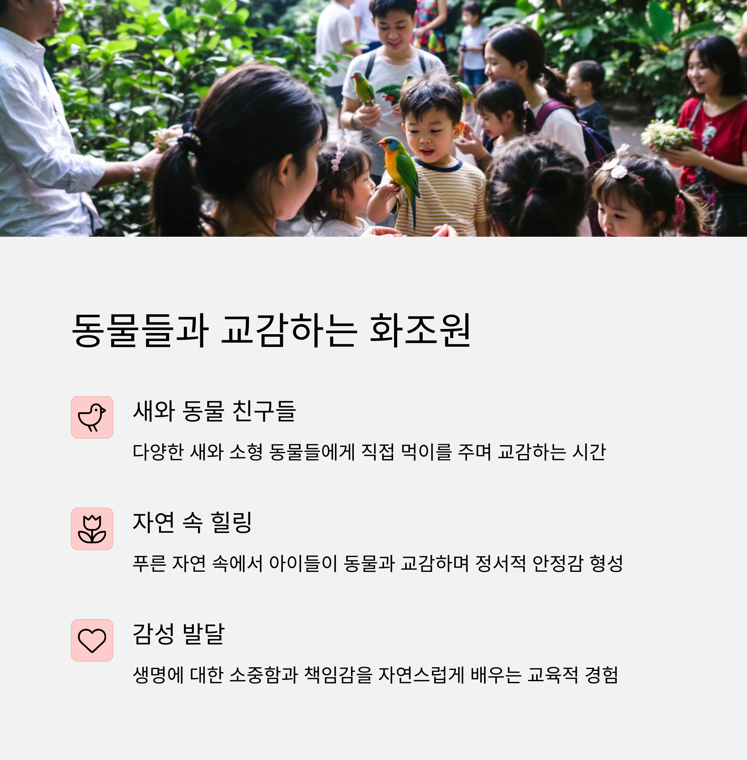 야외 활동도 제주 여행에서 빼놓을 수 없는 즐거움입니다. 에코랜드는 미니 기차를 타고 제주 숲 속을 여행하는 테마파크로, 아이들에게는 마치 동화 속 여행 같은 즐거운 시간을 선사합니다. 각 정류장마다 다양한 테마가 있으며, 곳곳에 쉬어갈 수 있는 공간도 잘 조성되어 있어 부모님들도 여유롭게 휴식을 취할 수 있습니다. 또한 화조원은 다양한 종류의 새와 소형 동물들을 가까이에서 관찰하고 먹이를 줄 수 있는 체험 공간으로, 동물을 좋아하는 아이들에게 특히 추천할 만한 장소입니다.