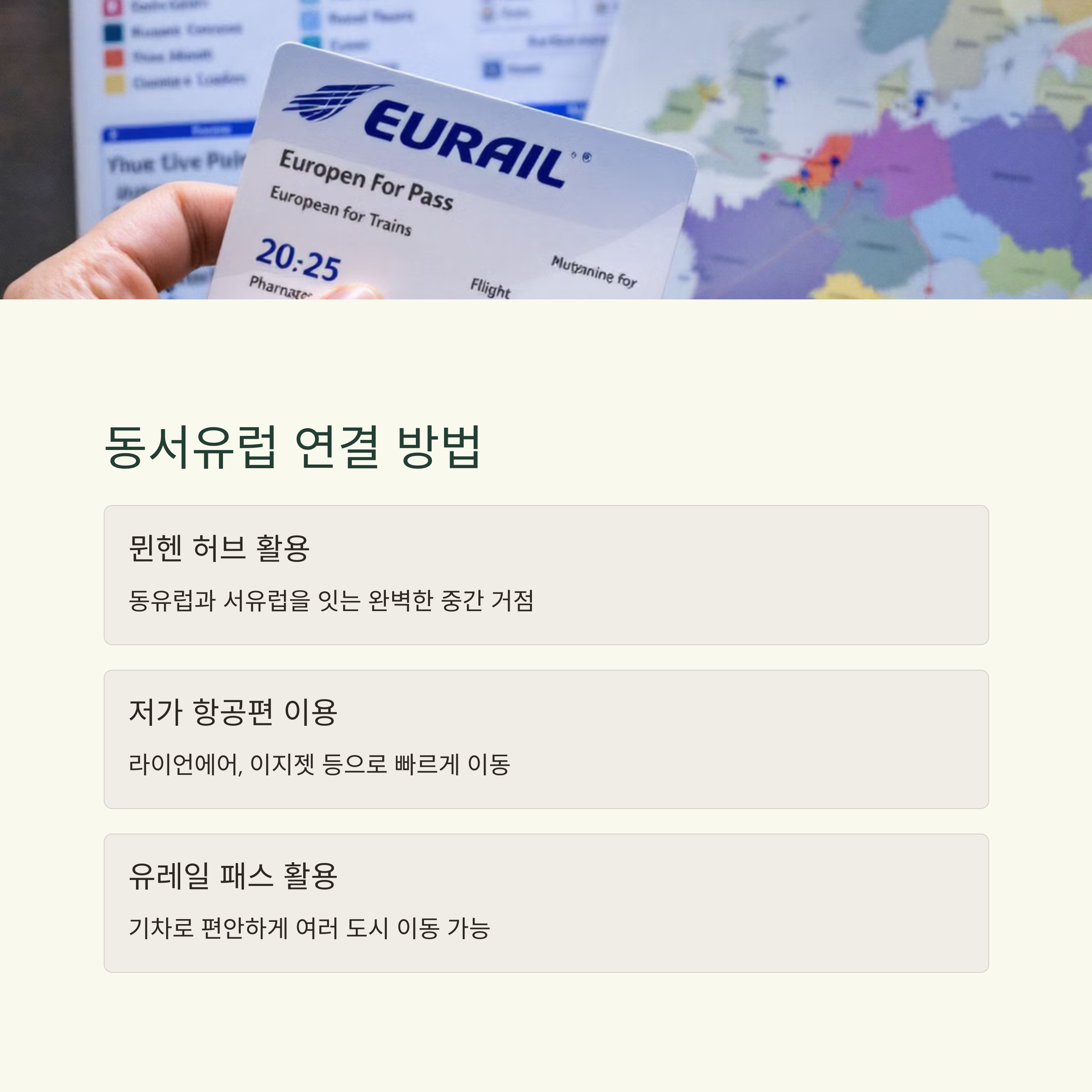 두 지역을 연결하는 허브로는 독일 뮌헨이 가장 효율적입니다. 동유럽 루트를 마친 후 뮌헨에서 휴식을 취하거나 서유럽으로 넘어가는 중간 지점으로 활용하면 일정에 유연함을 더할 수 있습니다. 또한, 뮌헨에서 파리, 로마 등 주요 도시는 저가 항공편이나 야간 열차로 쉽게 연결되므로 장거리 이동에 대한 부담도 줄일 수 있습니다. 각 지역의 특징을 살린 여행 스타일을 결합하면 훨씬 더 만족도 높은 유럽 여행이 완성됩니다.