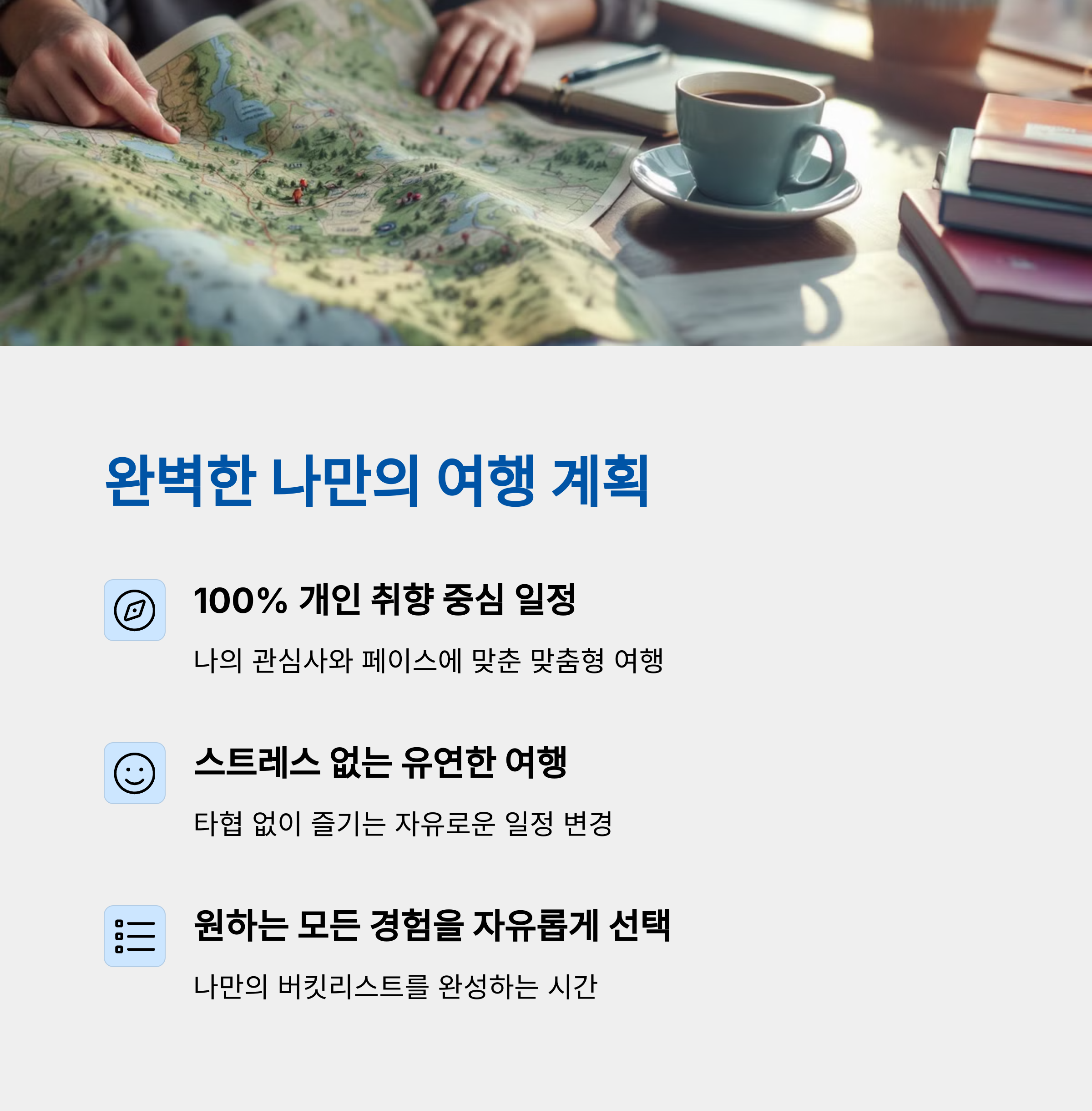누구의 눈치도 보지 않고, 내가 원하는 대로 일정과 루트를 구성하며