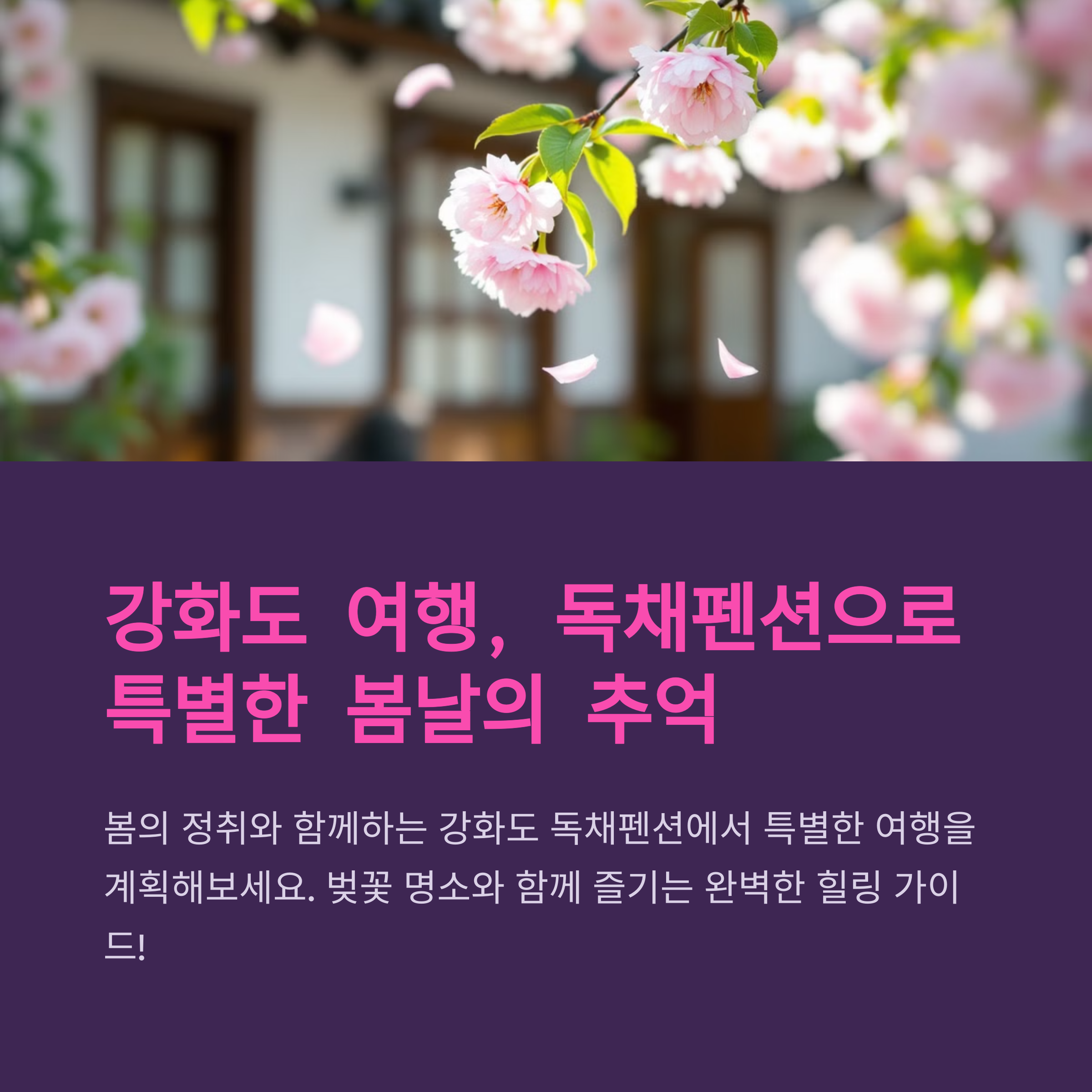 강화도에서의 잊지 못할 봄 순간이 있으신가요? 추천 펜션이나 숨은 벚꽃 명소가 있다면 댓글로 남겨주세요. 서로의 여행 이야기를 나누며 봄의 기억을 더 따뜻하게 만들어봐요 🌸