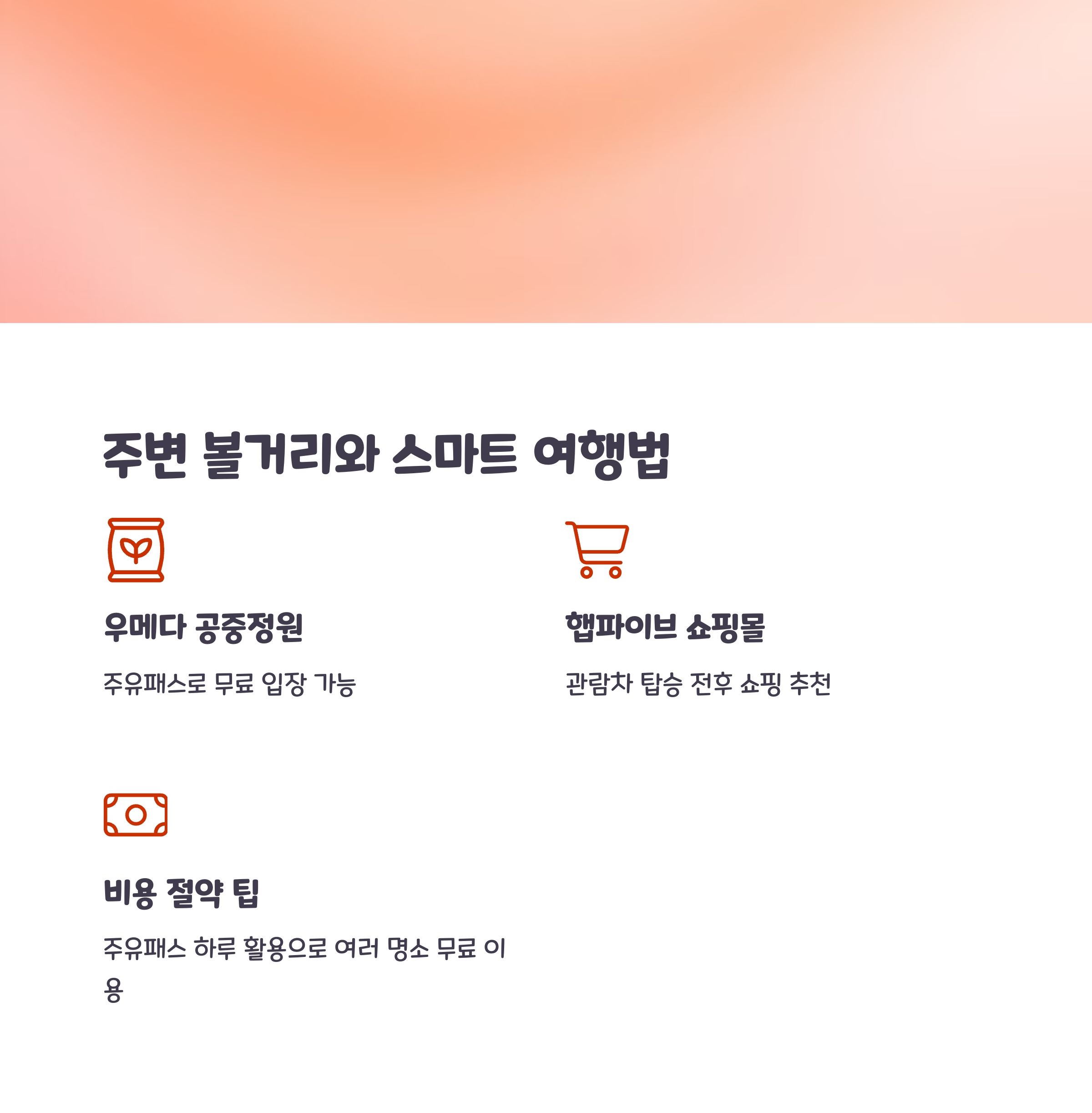 무료 이용 혜택인 주유패스 덕분에 예산을 절약하면서 특별한 경험을 할 수 있다는 점이 매력적입니다.