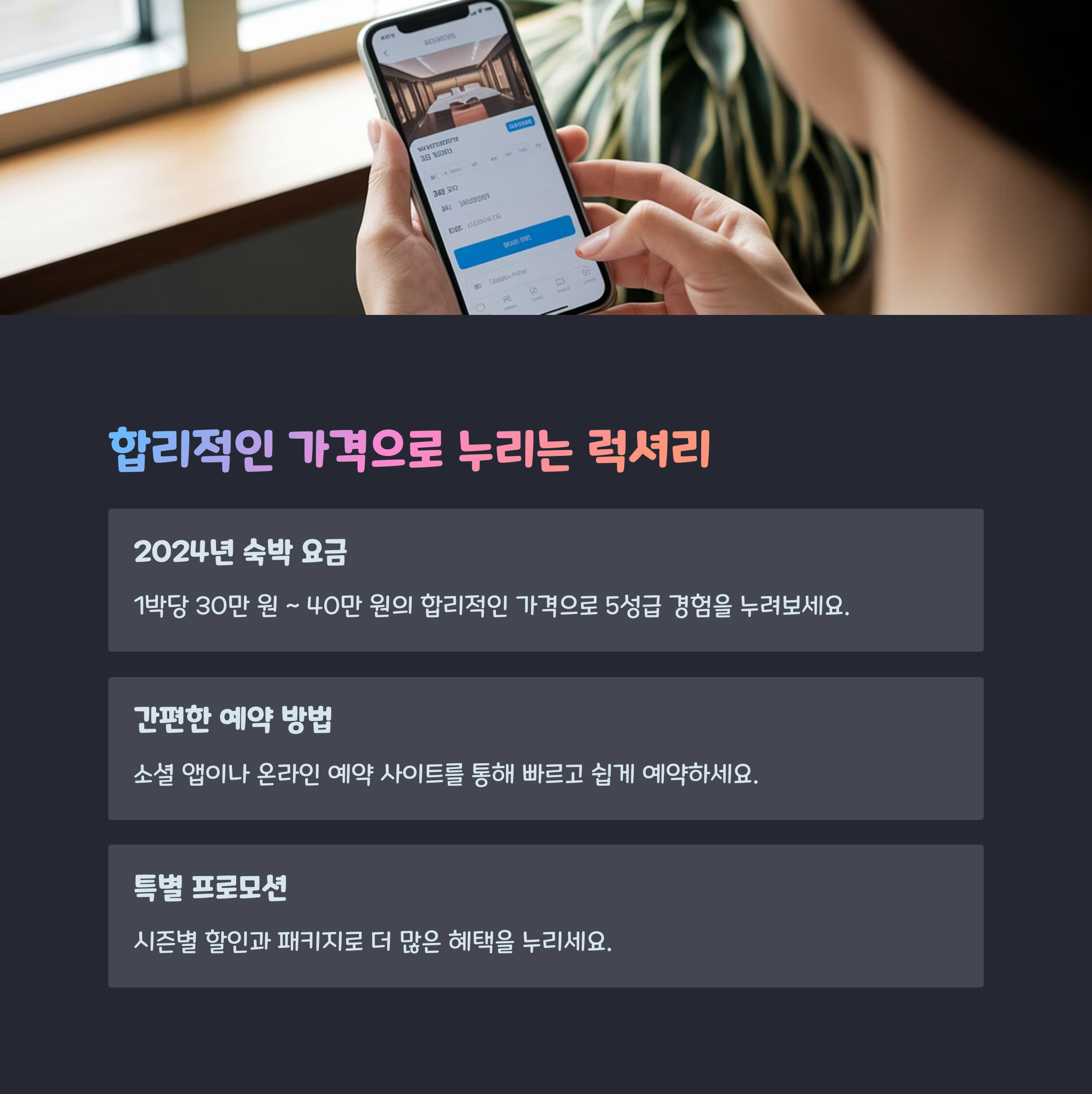 | 객실 가격 | 약 30만 원 ~ 40만 원/1박 |