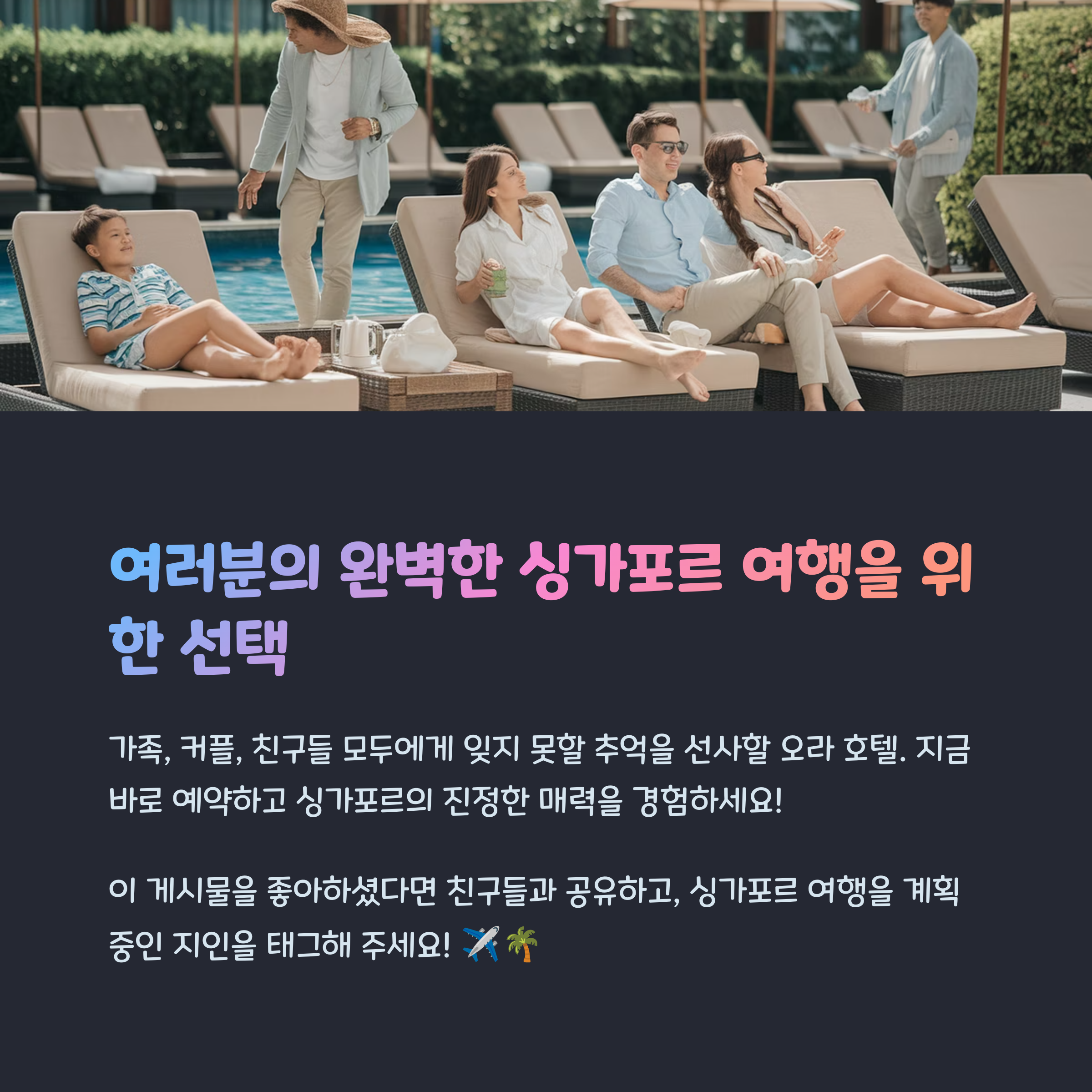 싱가포르 여행에서 최상의 추억을 만들 수 있는 럭셔리 숙소로 오라 호텔을 강력히 추천합니다.