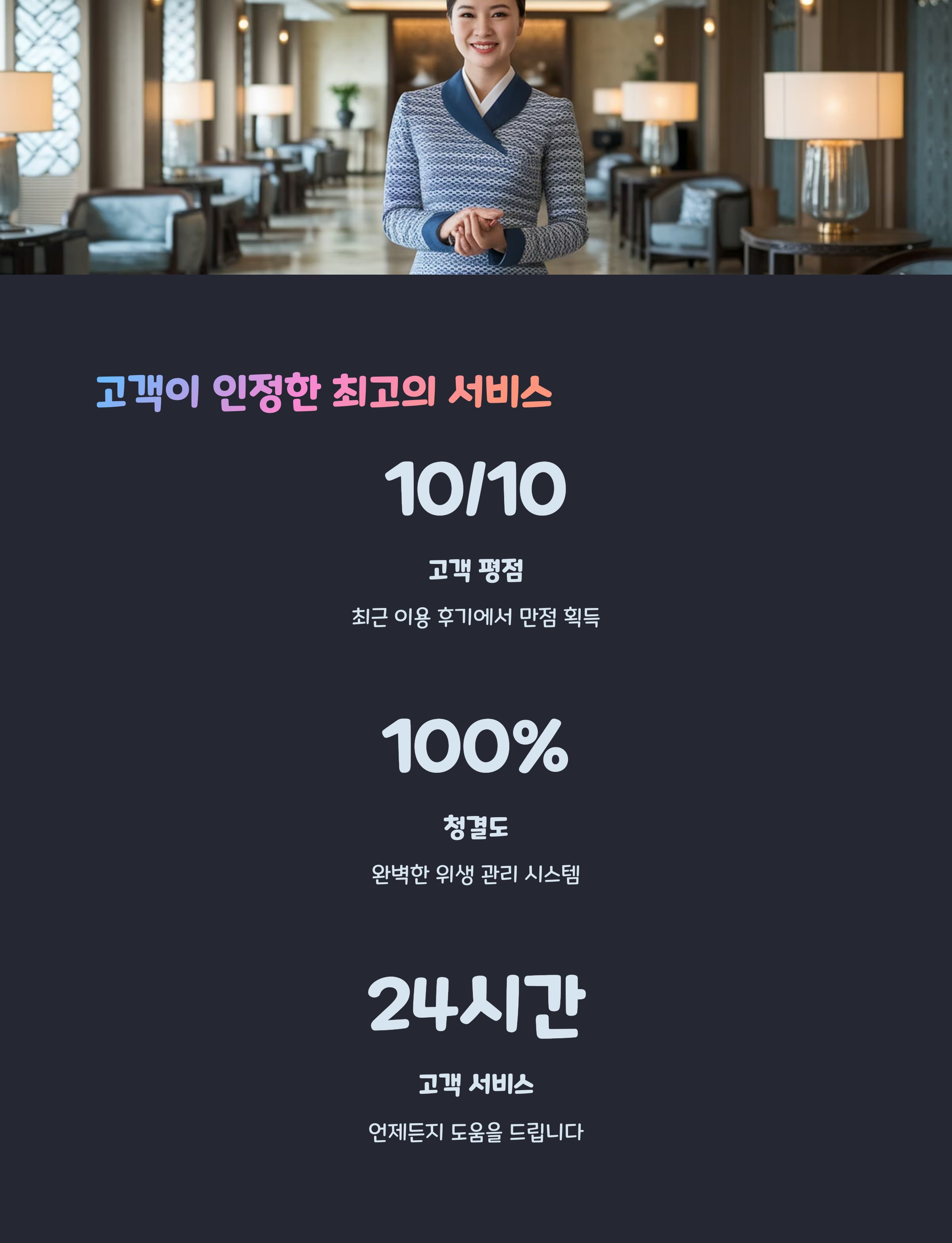 서비스 품질과 청결도 측면에서도 꾸준히 높은 평가를 받고 있어 안심하고 선택할 수 있습니다.