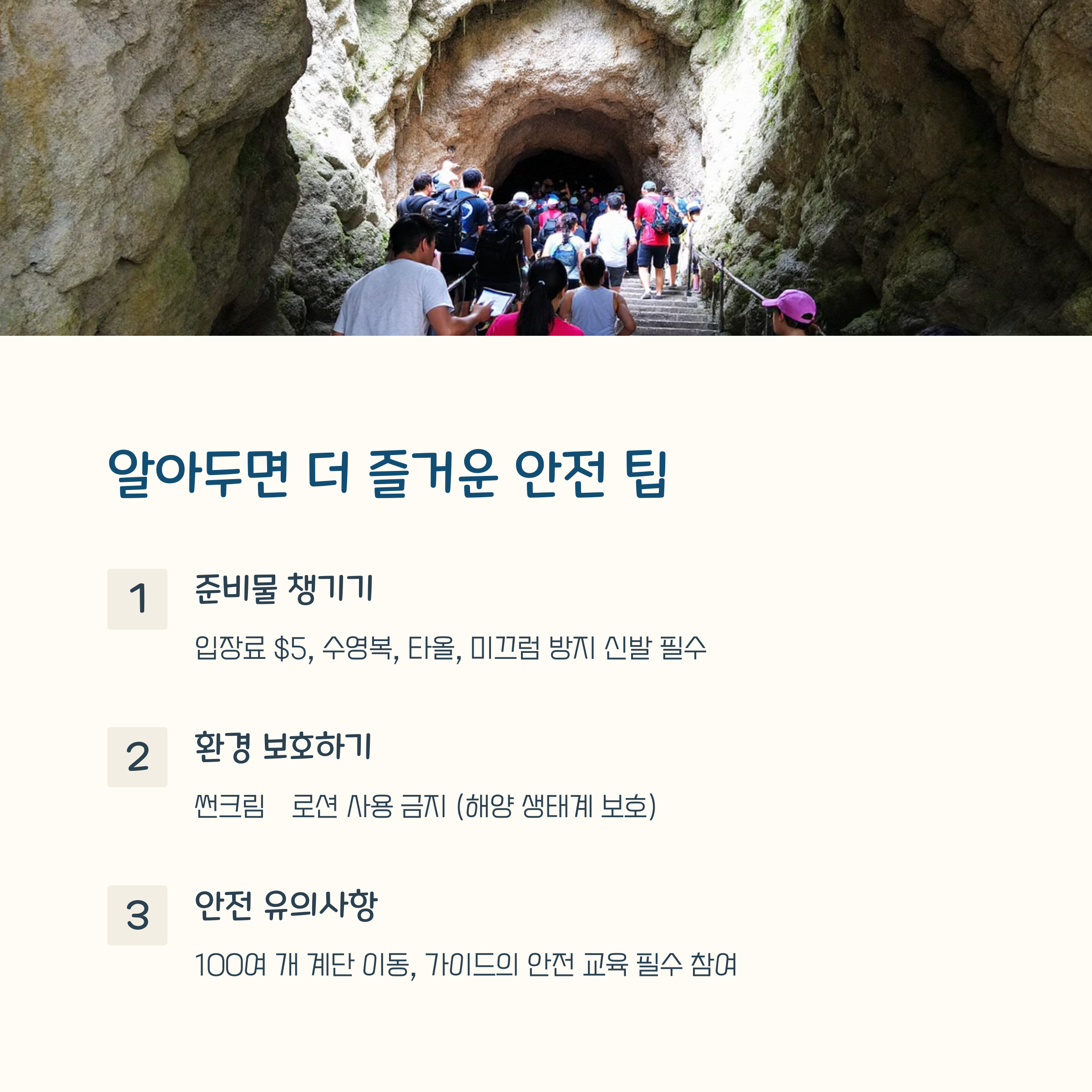 그로토 스노클링을 더욱 알차게 즐기기 위해 몇 가지 팁을 제공합니다.