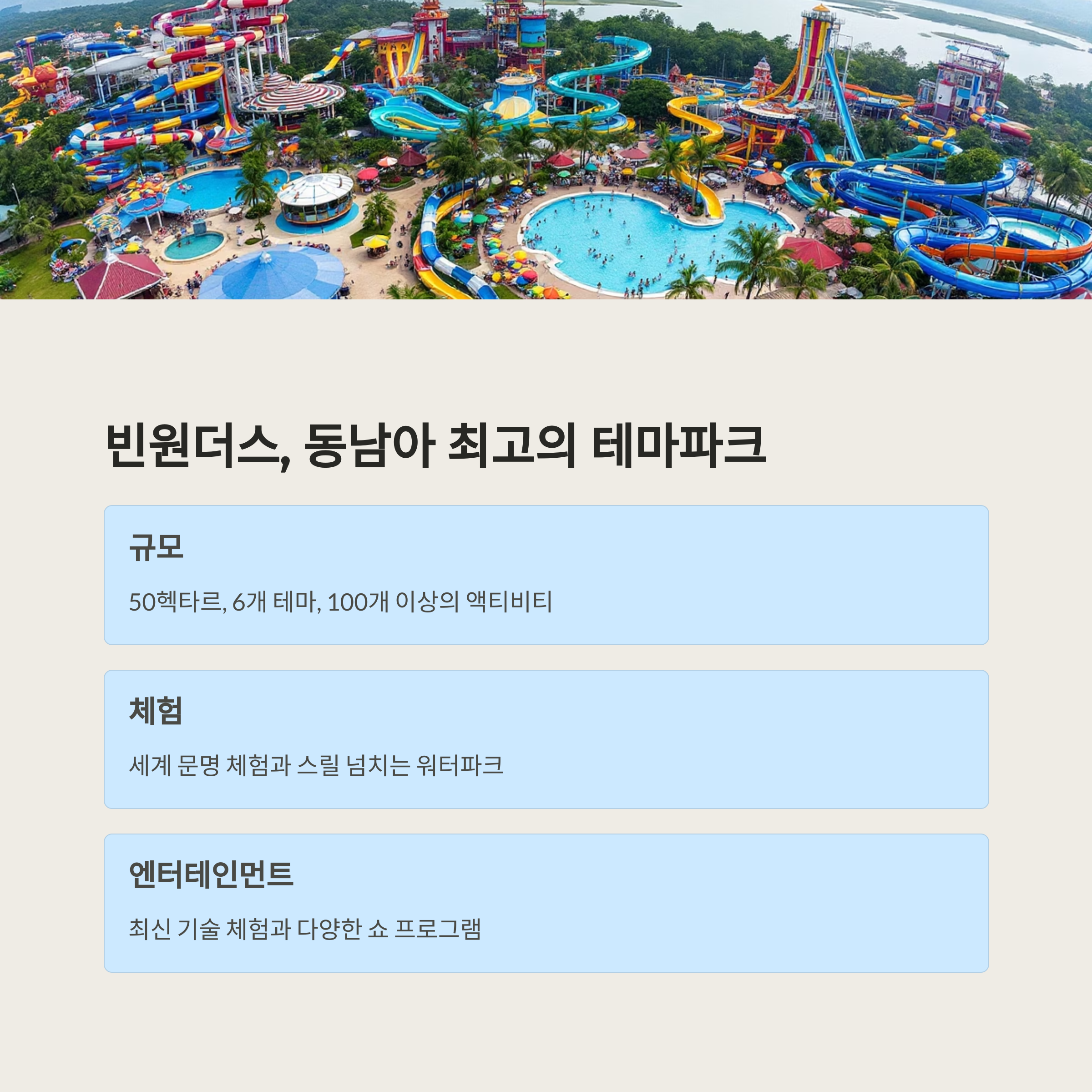 빈원더스의 테마파크는 액티비티 중심 일정에서 빠질 수 없는 장소입니다.