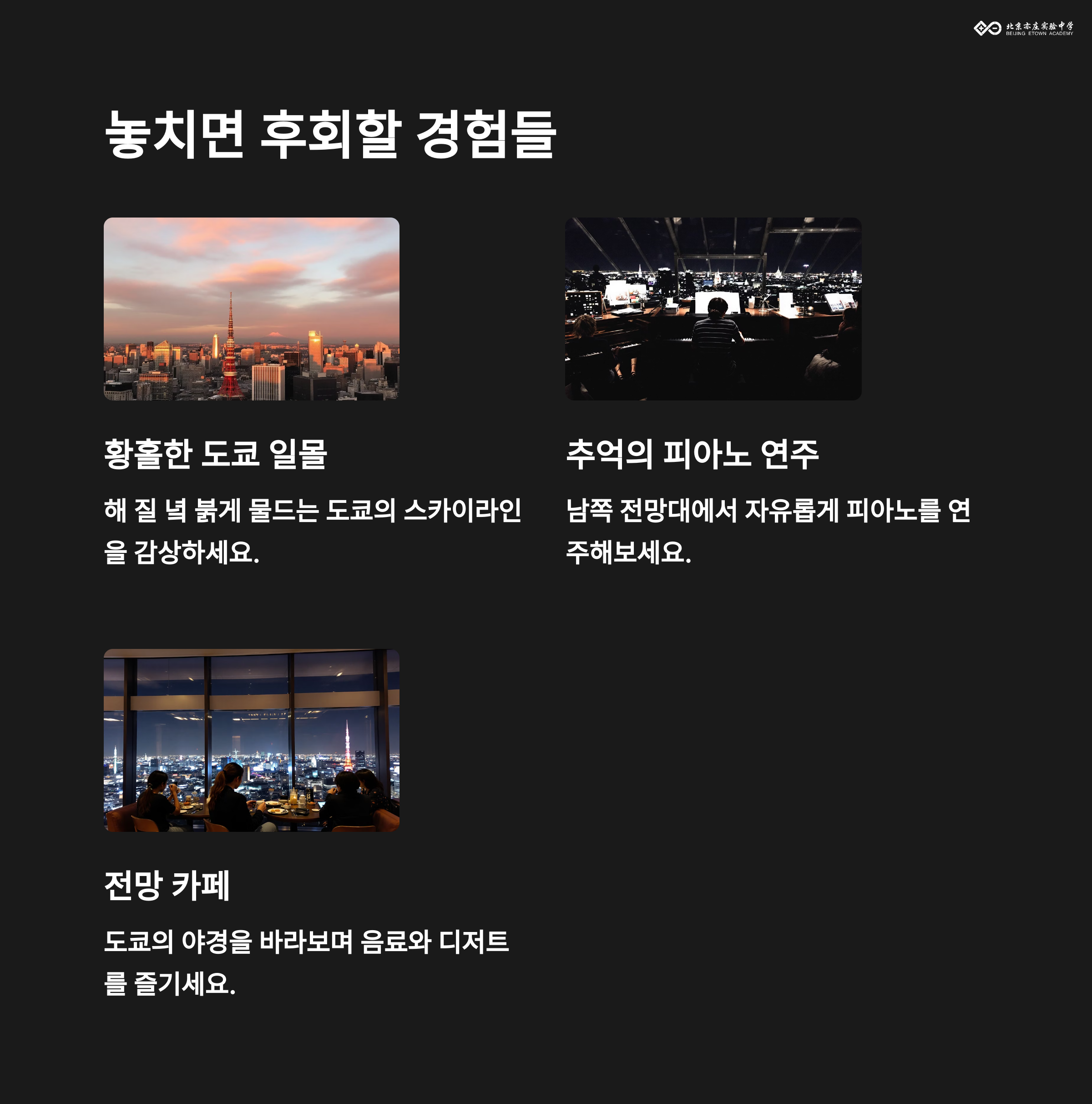 방문 시 사전 운영 시간이나 이벤트 정보를 확인해준다면 더욱 충실하게 도쿄 밤을 즐길 수 있습니다.