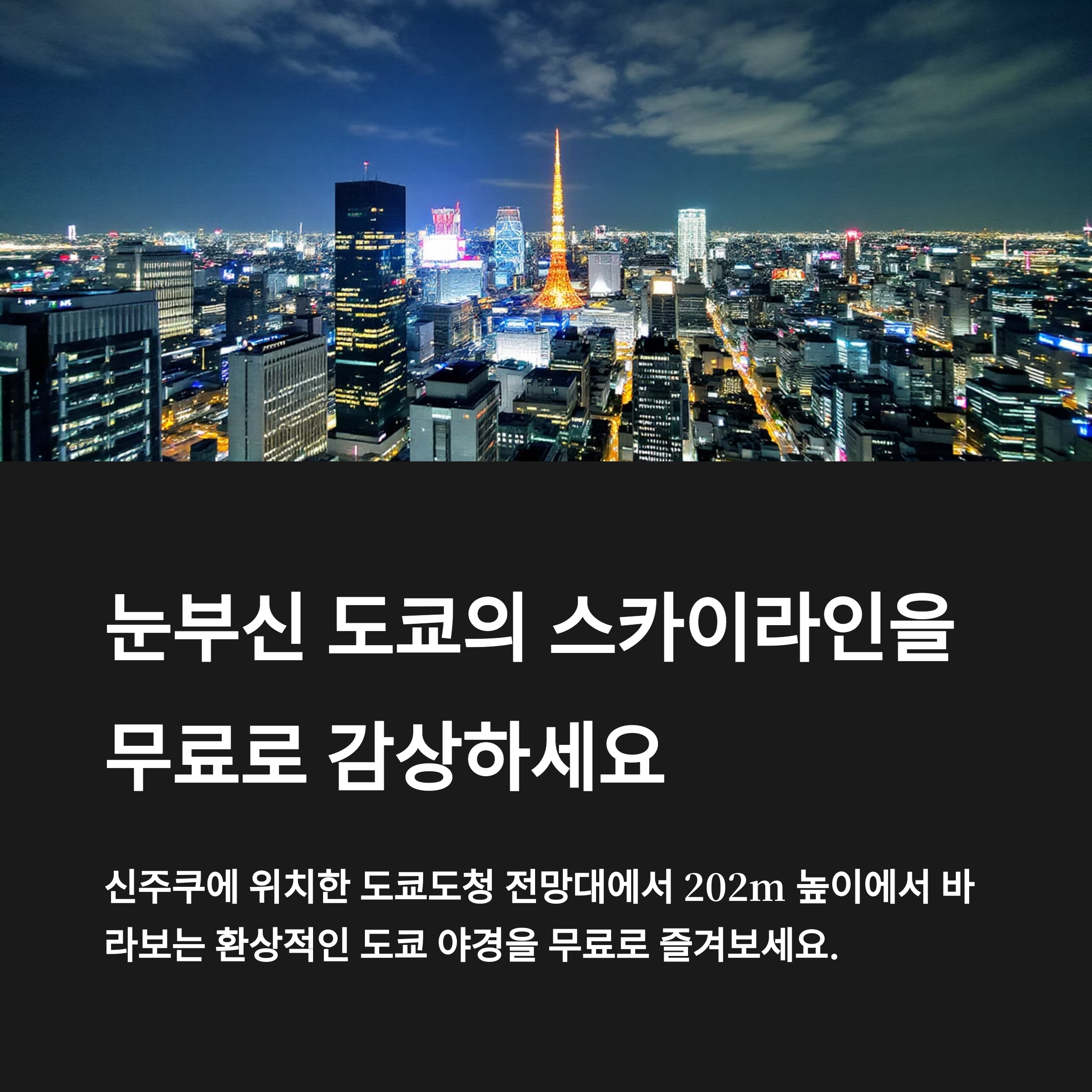 도쿄도청 전망대는 무료로 도쿄의 화려한 야경을 즐길 수 있는 최고의 명소입니다.