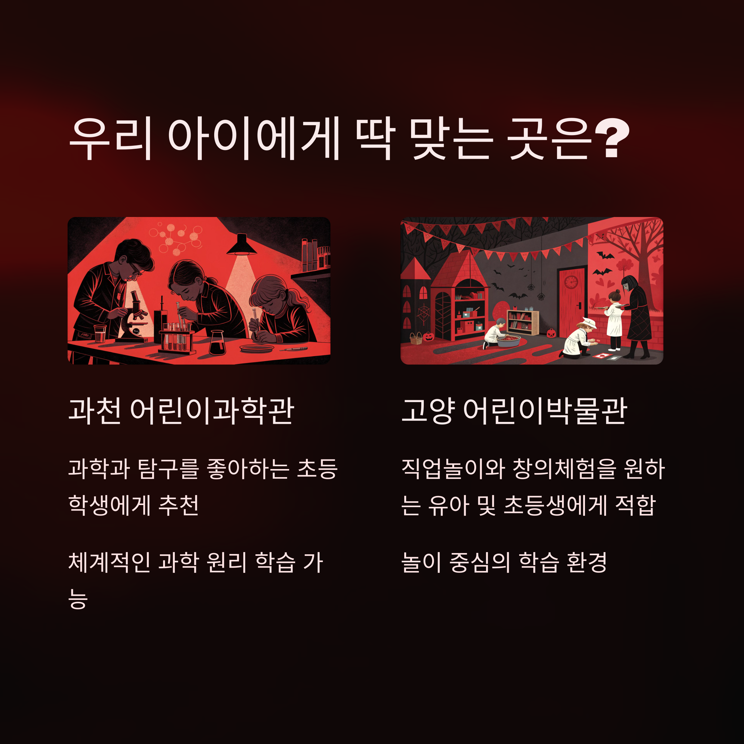 과천 어린이과학관 vs 고양 어린이박물관 - 한눈에 비교