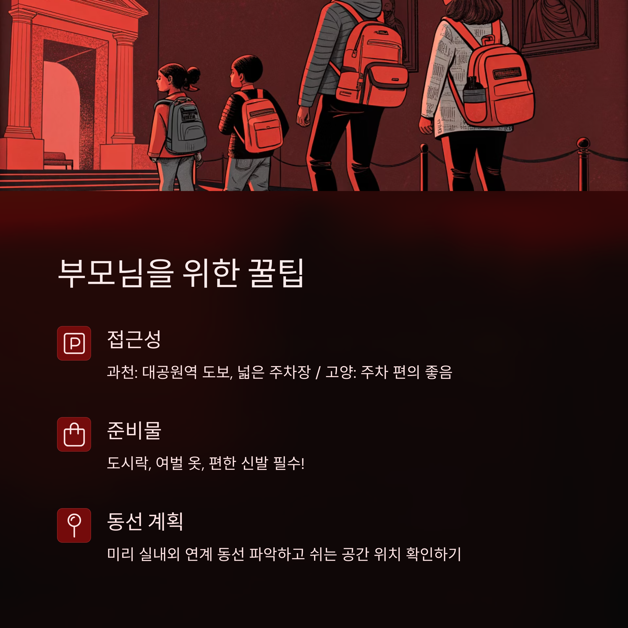 부모를 위한 추가 팁 - 주차, 동선, 준비물까지