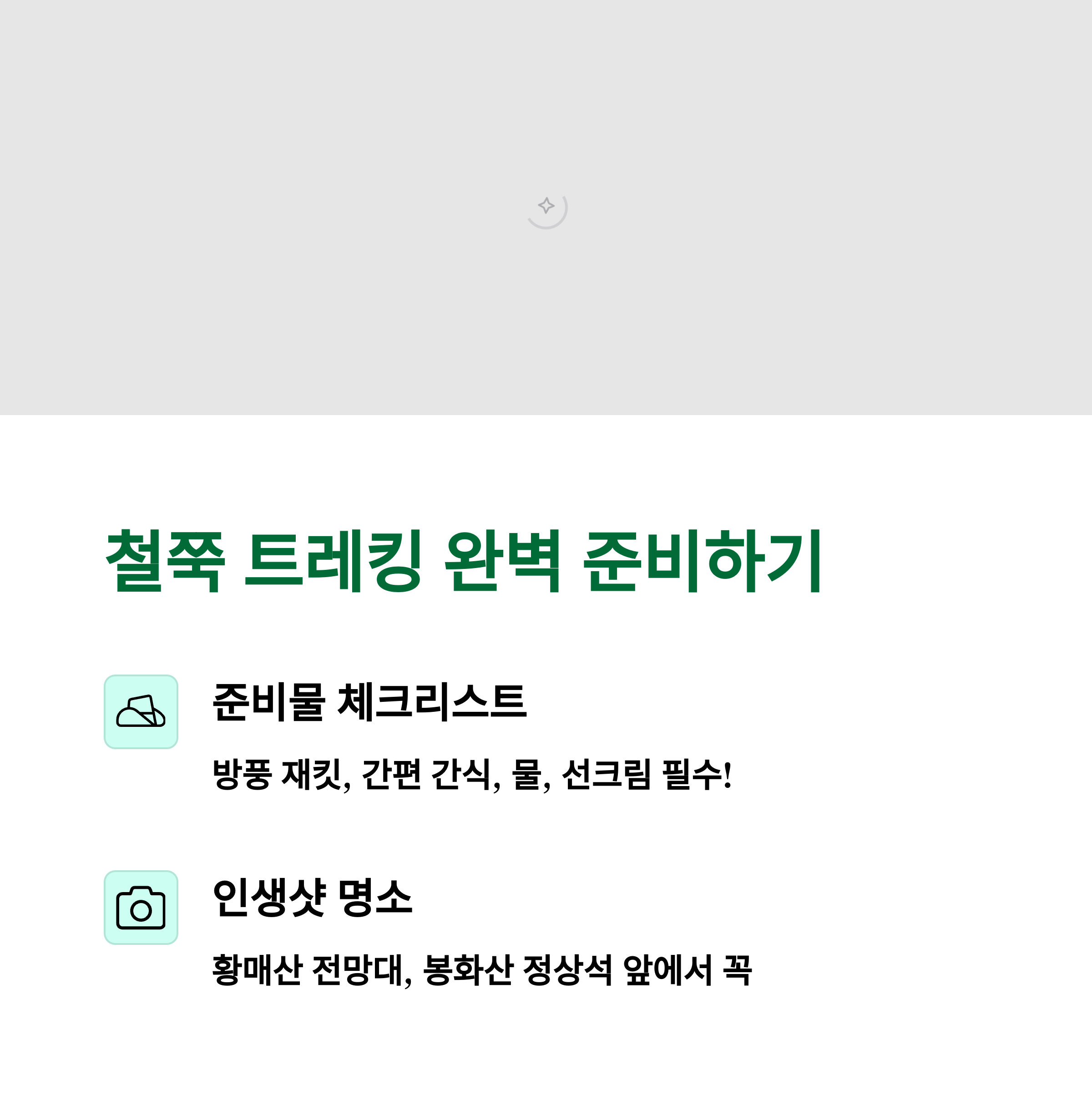 - 선크림, 모자, 바람막이 준비 (봄날 강한 자외선 주의)