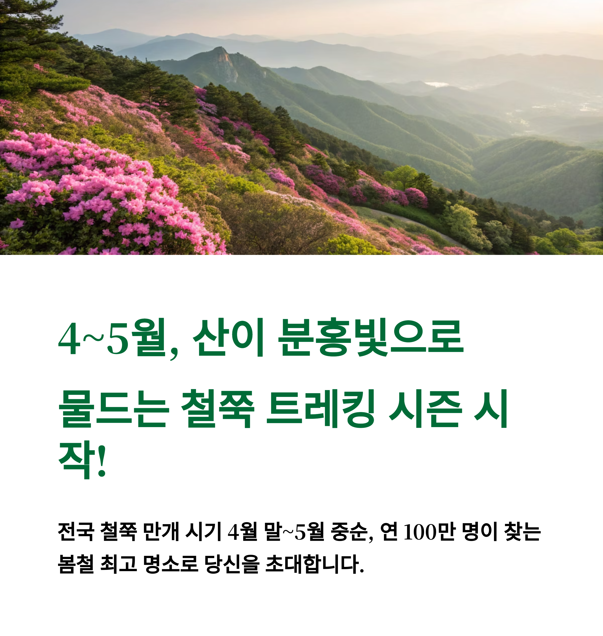 철쭉 트레킹 시즌 개요 - 4~5월, 산이 꽃으로 물드는 시간