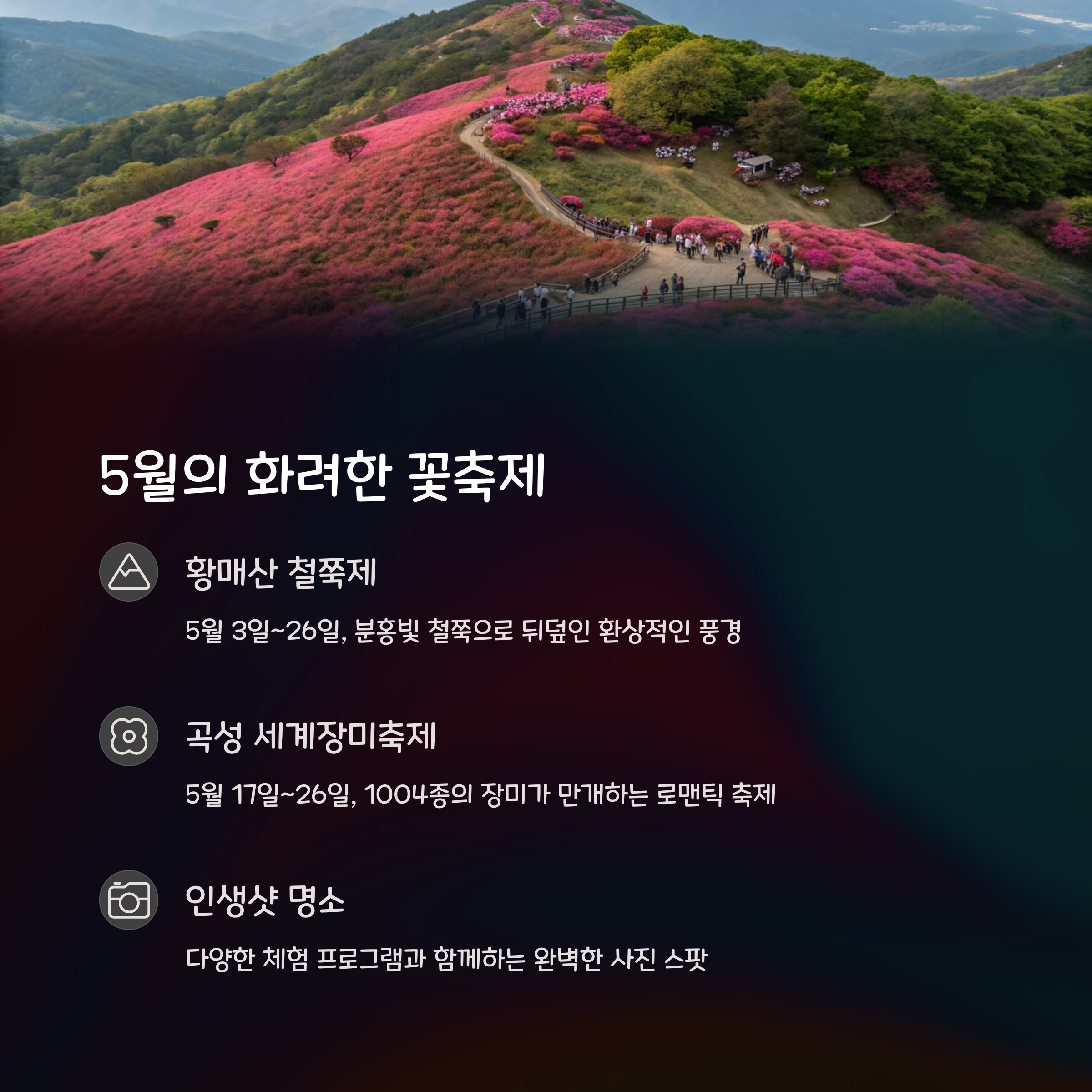 | 5월 축제 일정과 지역별 추천 코스 미리보기 (7) | 2025.05.03 |