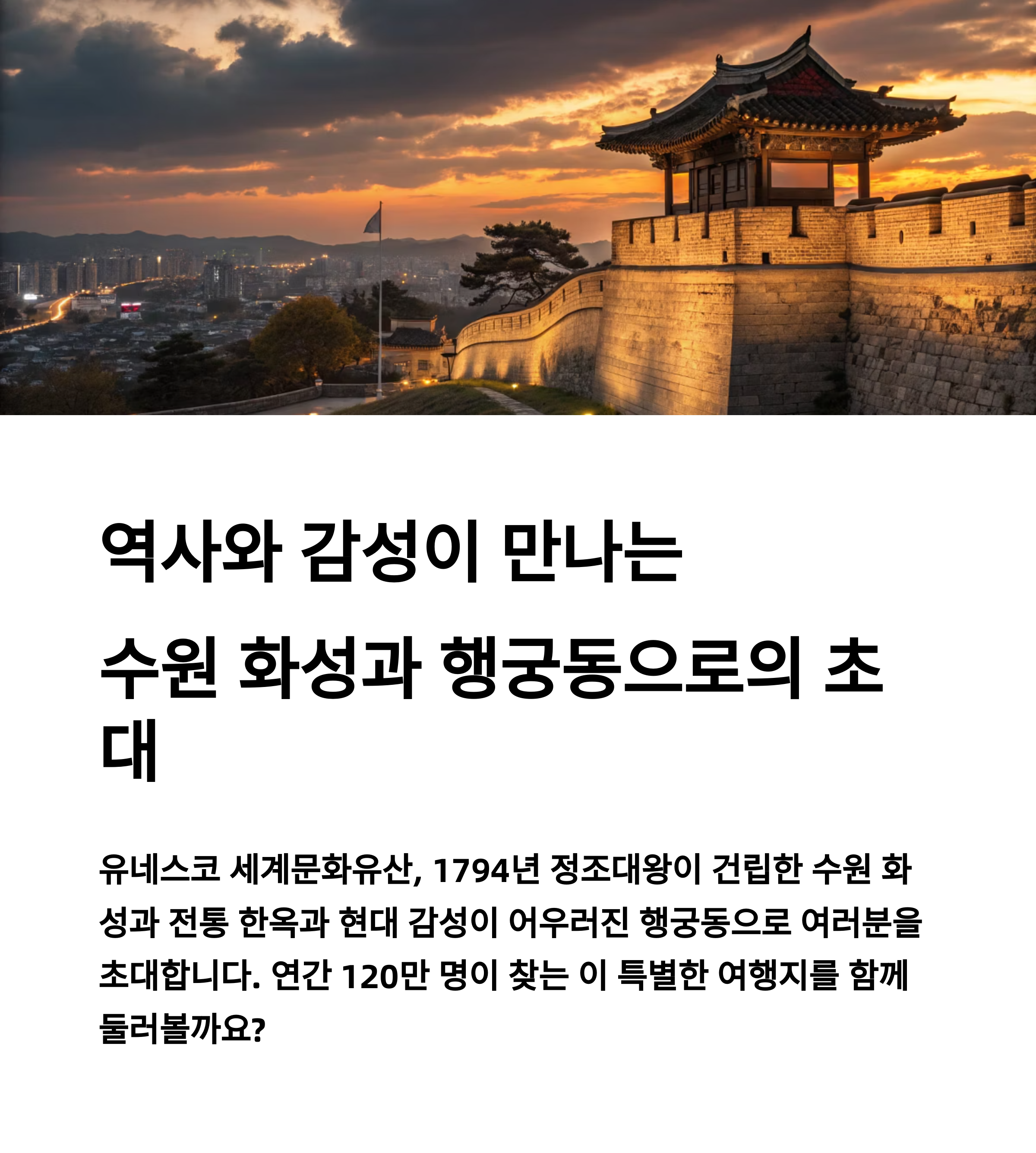 "문화와 힐링을 동시에, 수원만의 특별한 하루!" 🏛️🌿