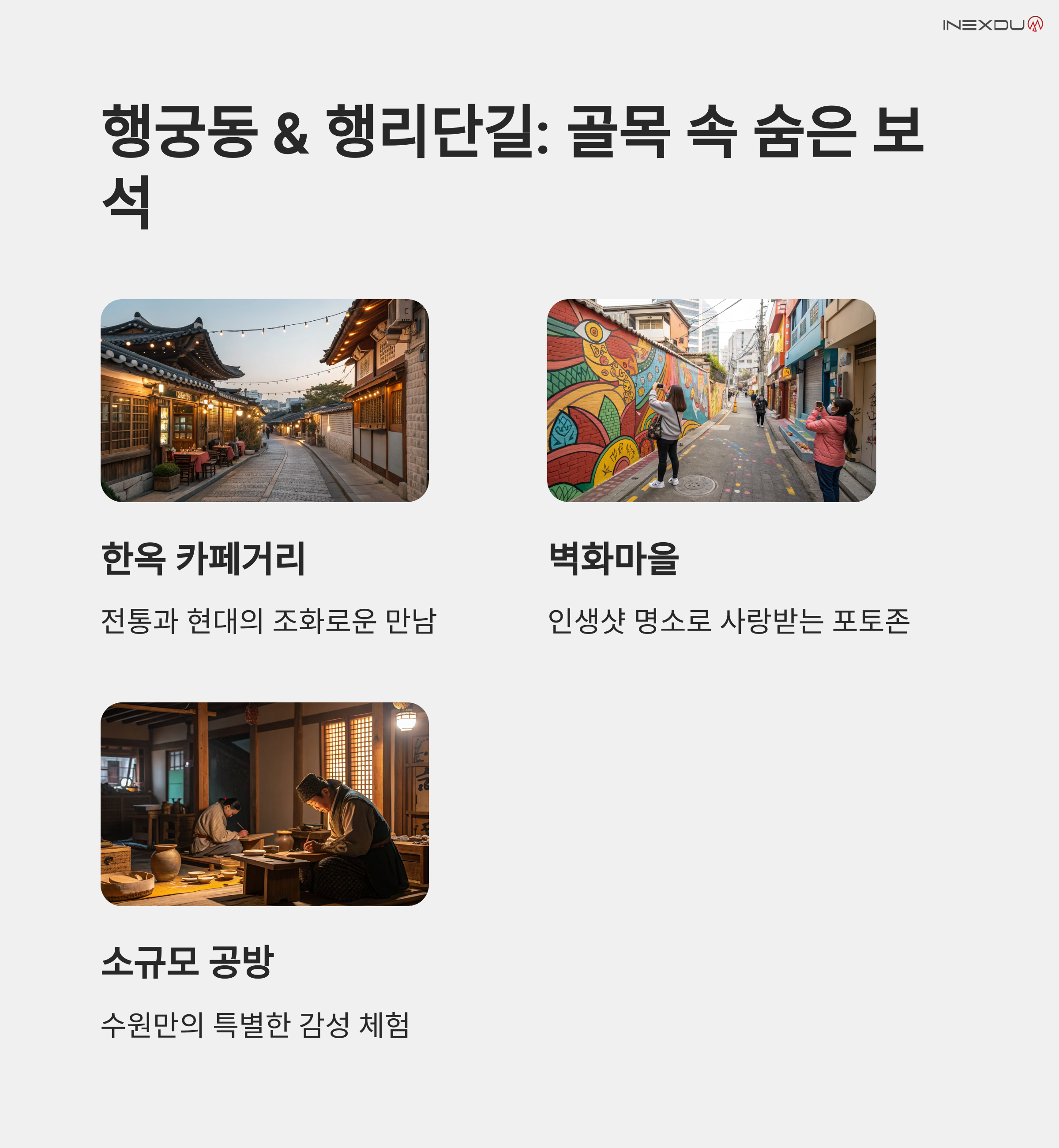 - 행리단길: 수원 핫플, 수제 디저트 카페·빈티지 소품샵 밀집