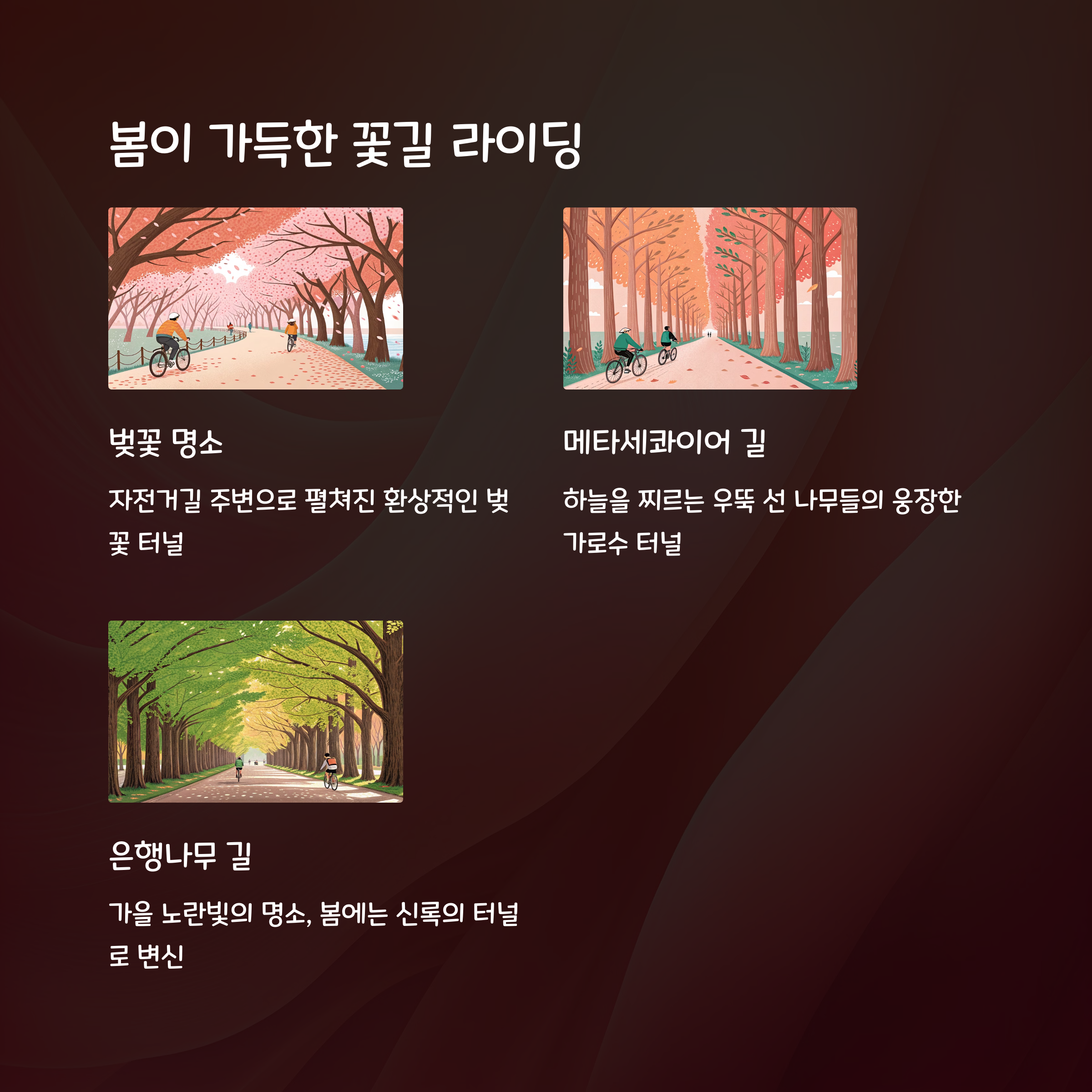 봄철 꽃길 포인트 - 벚꽃, 메타세콰이어, 은행나무길 명소