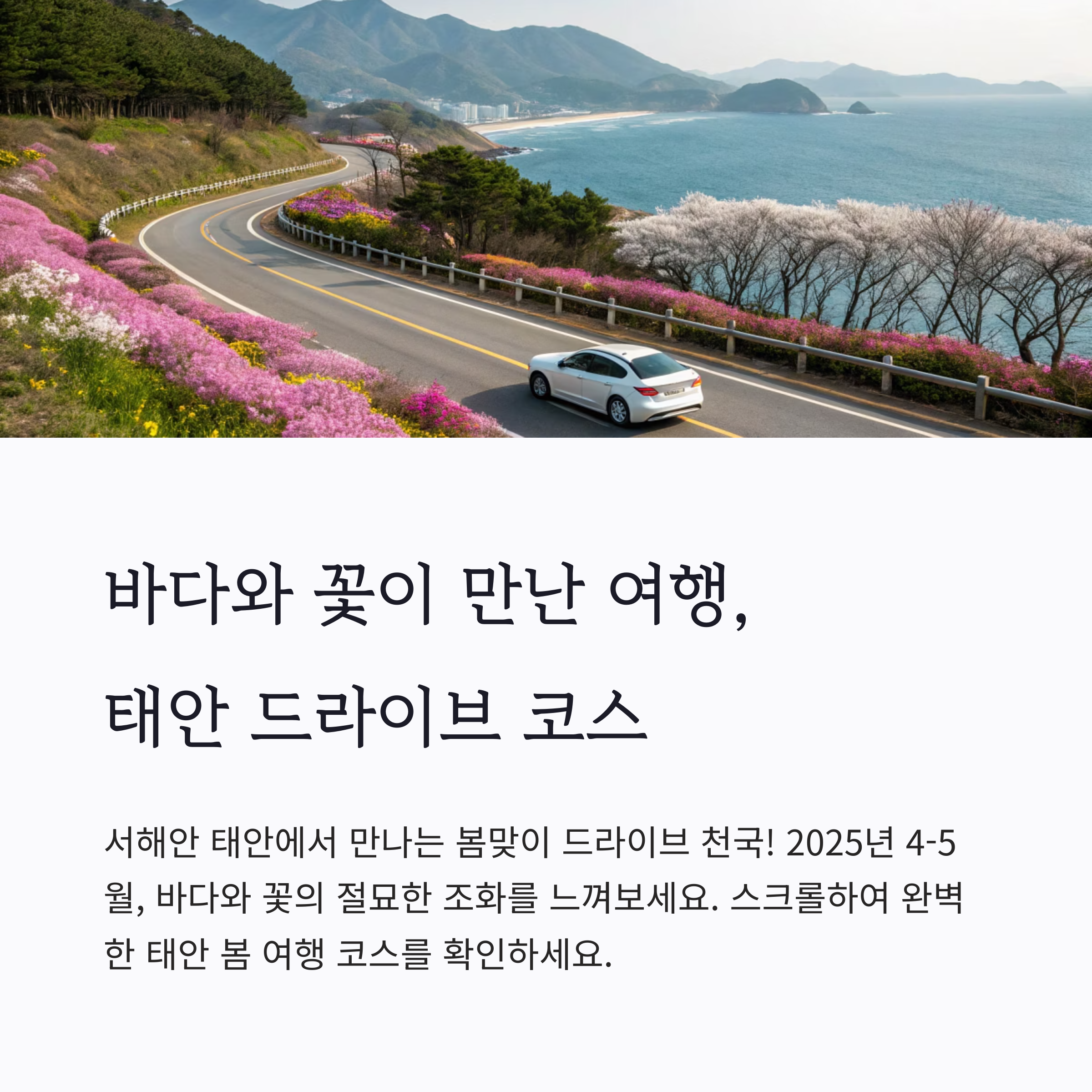 “자동차 속에서도 꽃이 보이고, 창문 너머로 봄이 흐르는 길. 태안은 그런 곳입니다.” 🚘🌸