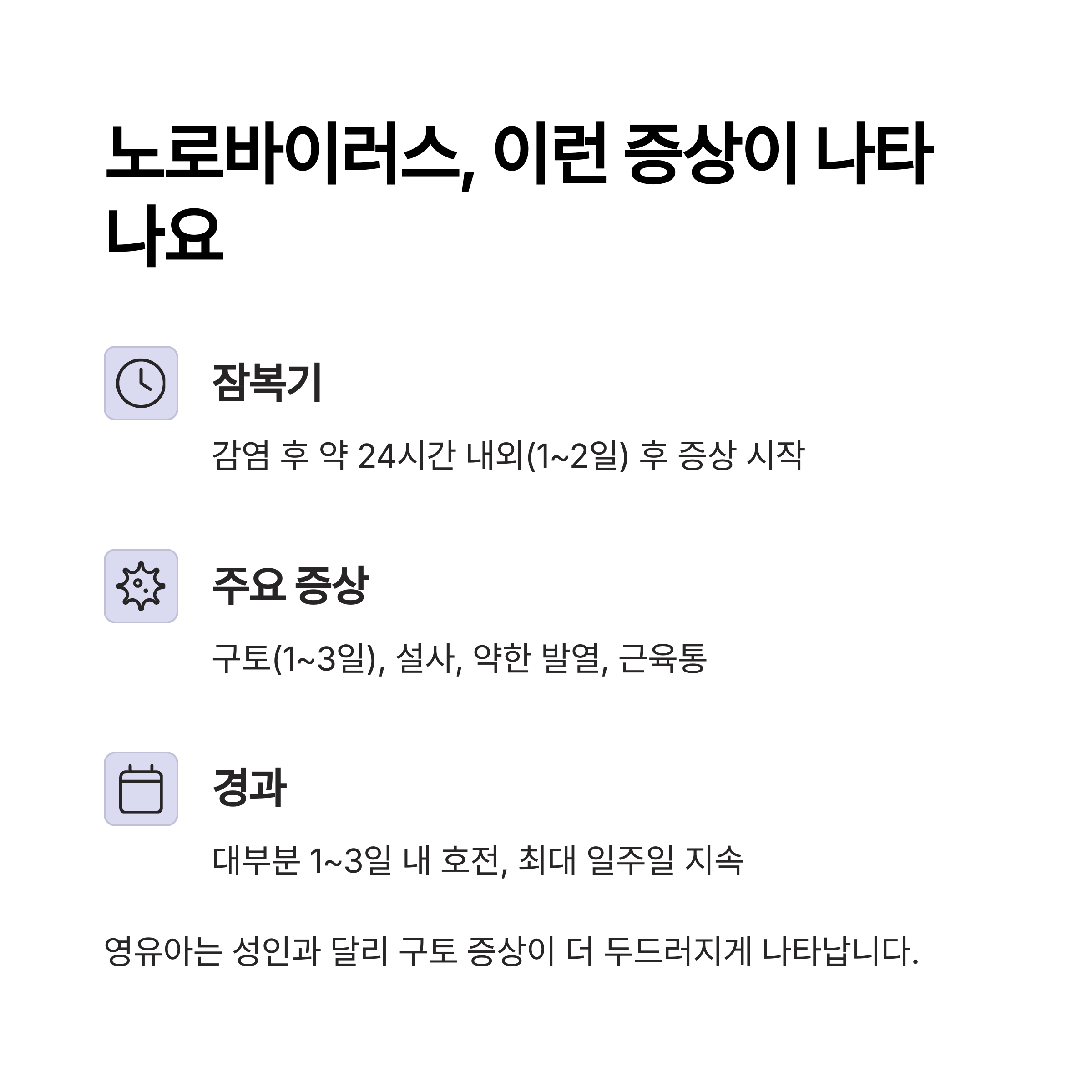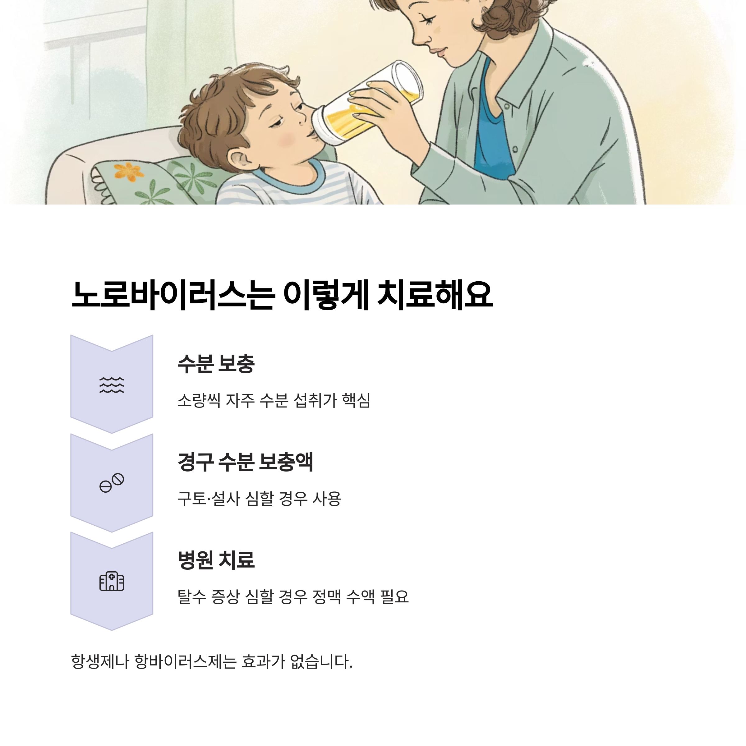 “유아의 노로바이러스는 구토와 탈수 관리가 가장 중요합니다.” 🩺💧