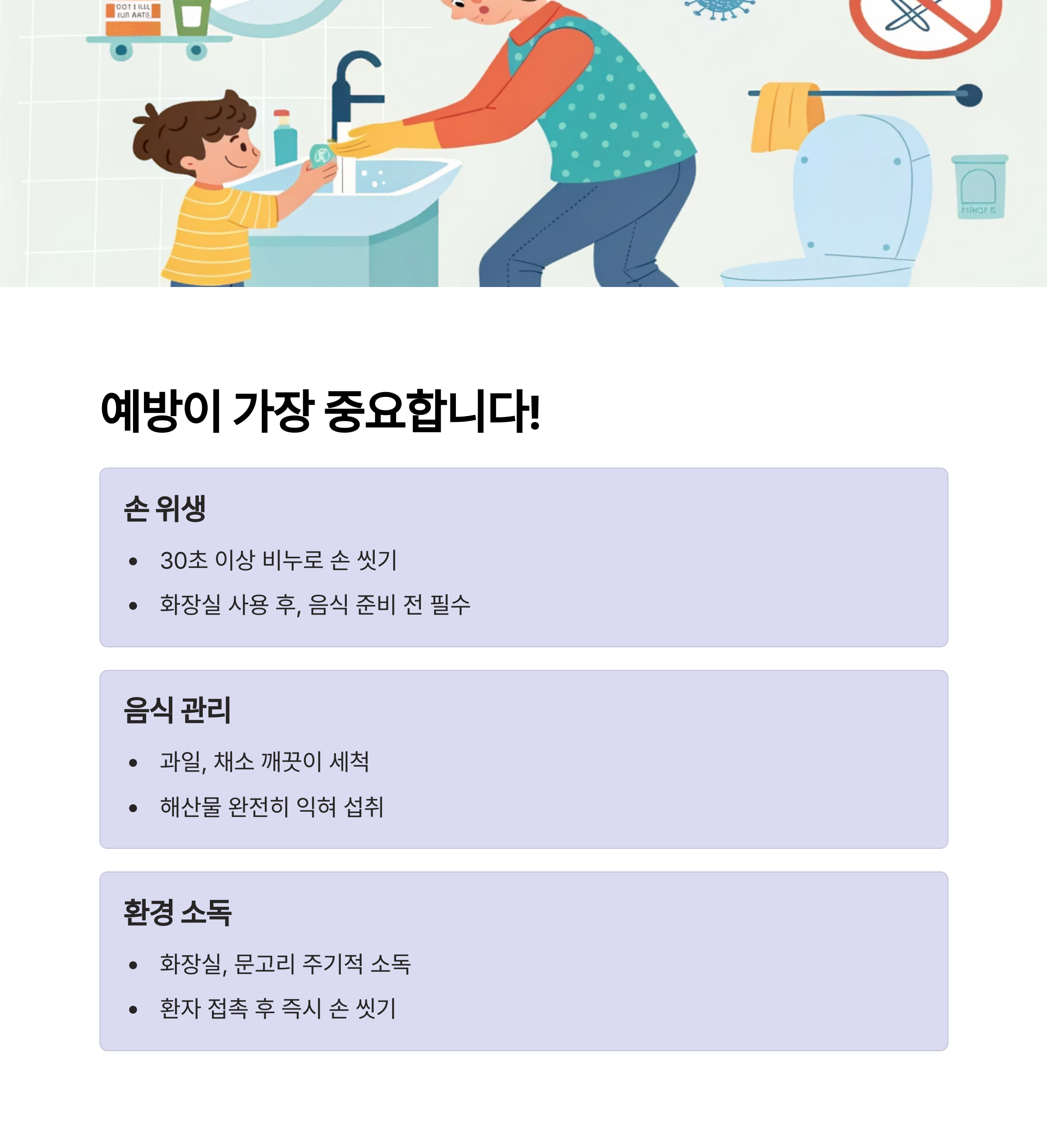 “빠르고 강력하지만, 올바른 위생관리로 충분히 막을 수 있습니다.” 🧴🛡️
