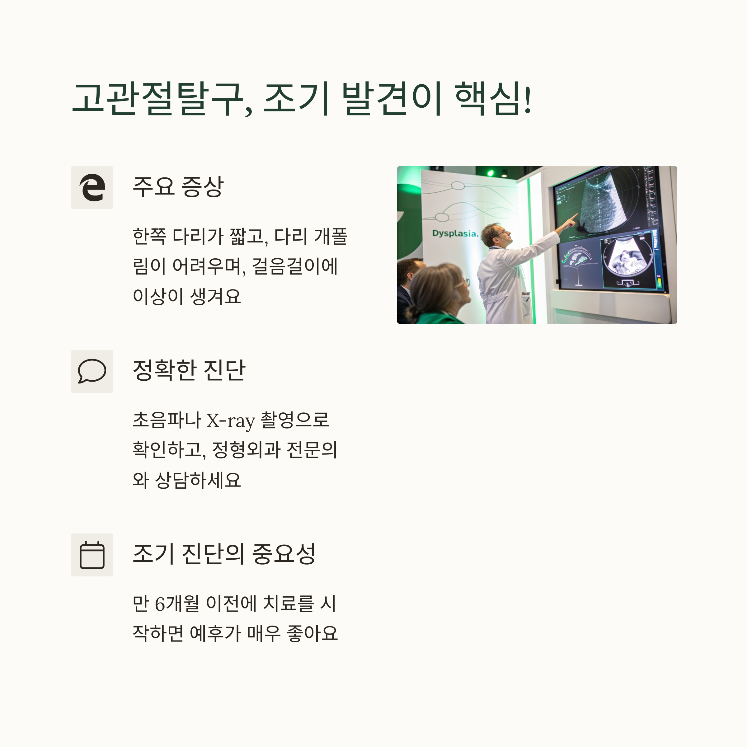 “조기 진단만으로도 비수술적 치료가 가능한 질환입니다.” 👨‍⚕️🦵
