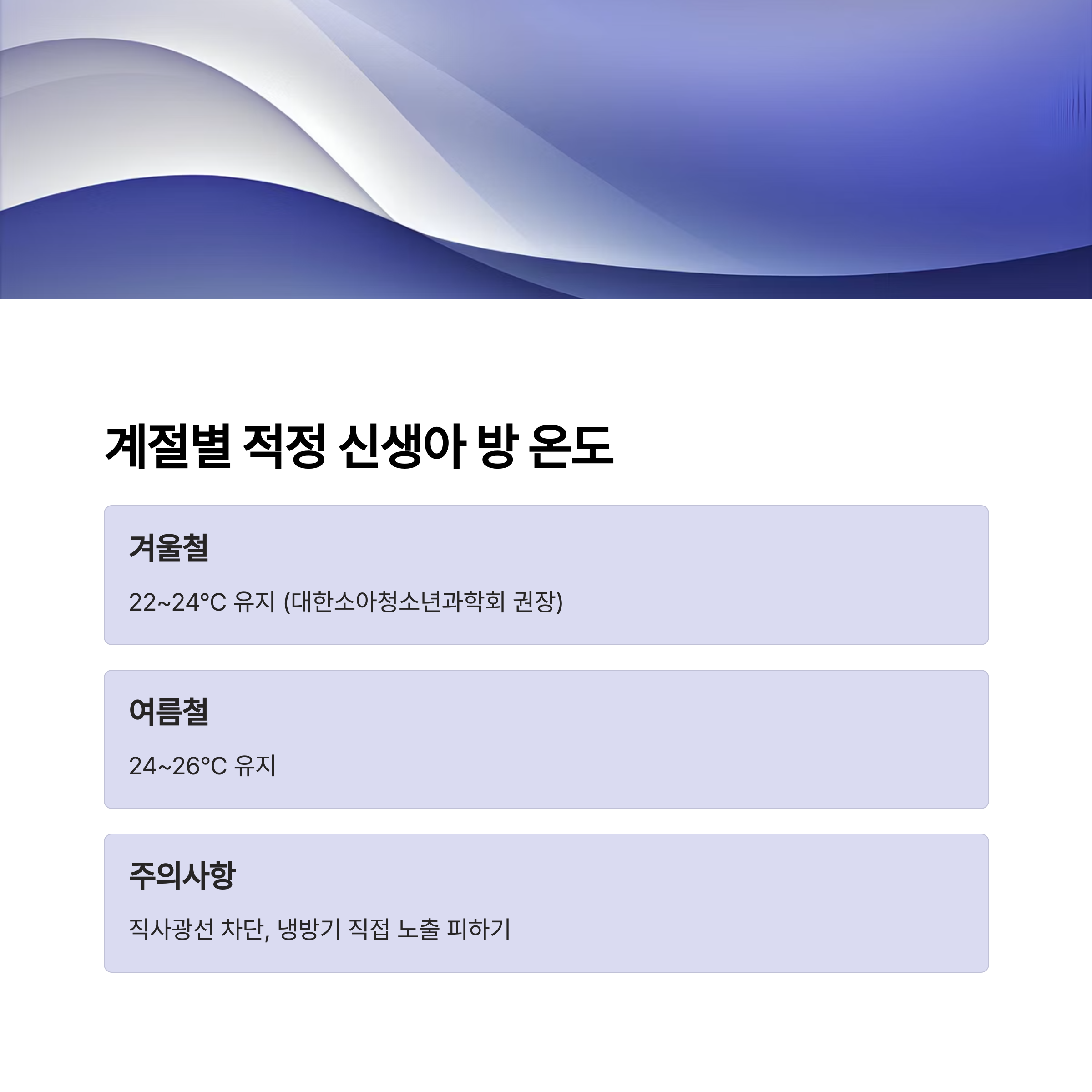 적정 온도 기준 - 계절별 신생아 방 온도