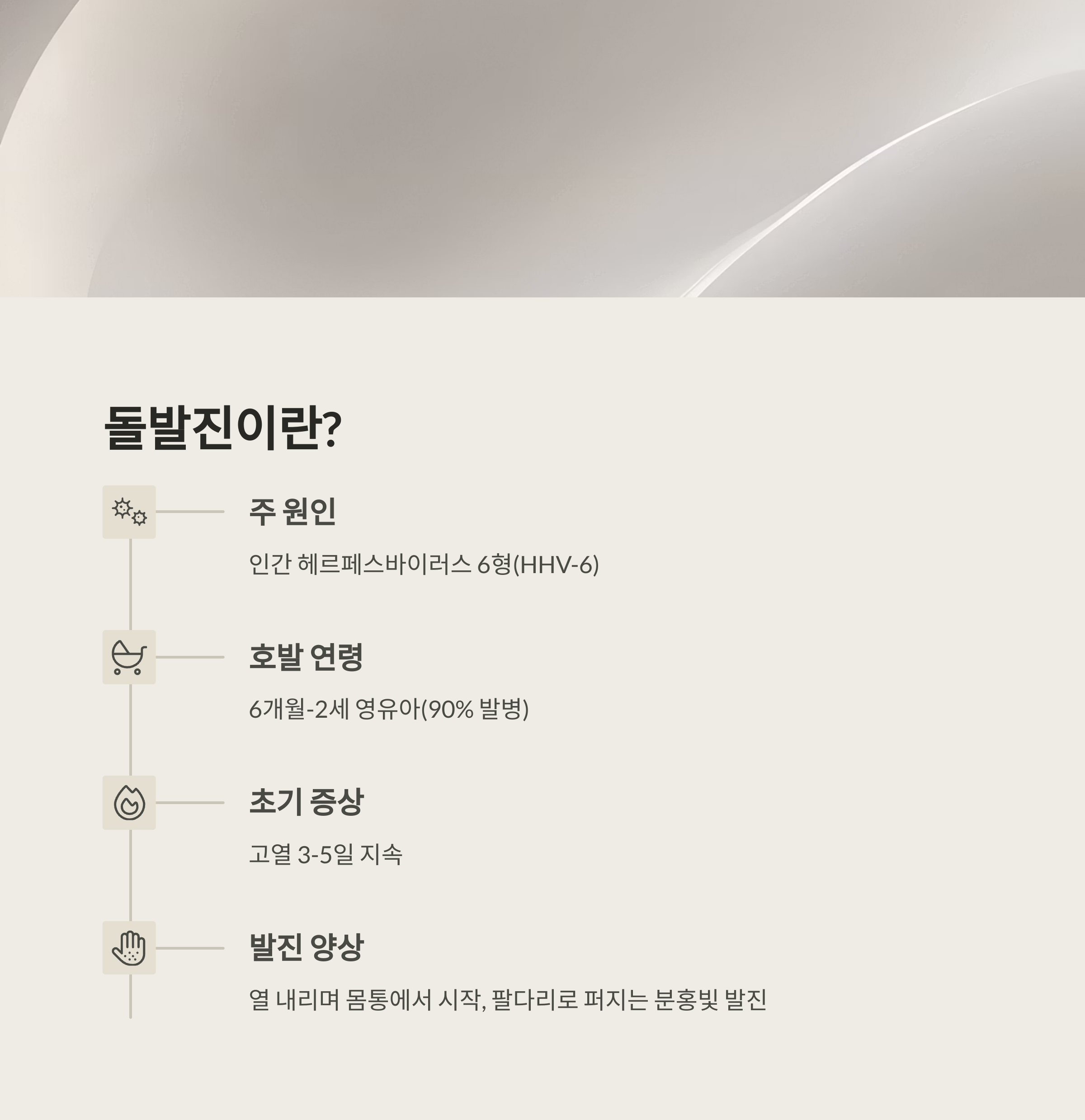 “돌발진은 고열 후 갑자기 나타나는 발진이 특징입니다.” 🌡️🔎