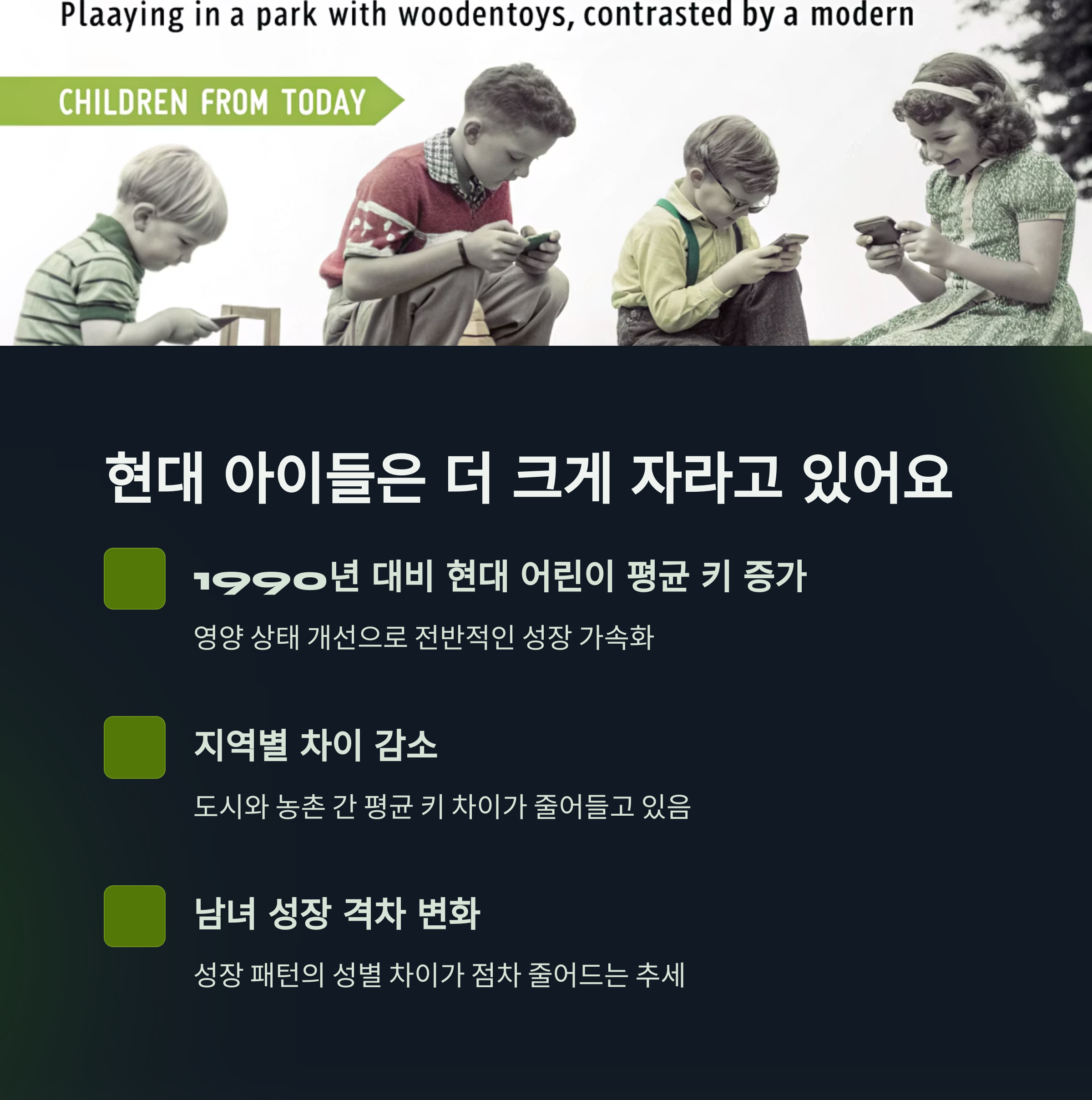 “최근에는 키보다 ‘성장 시기’가 빨라진 것이 특징입니다.” 🧬📉
