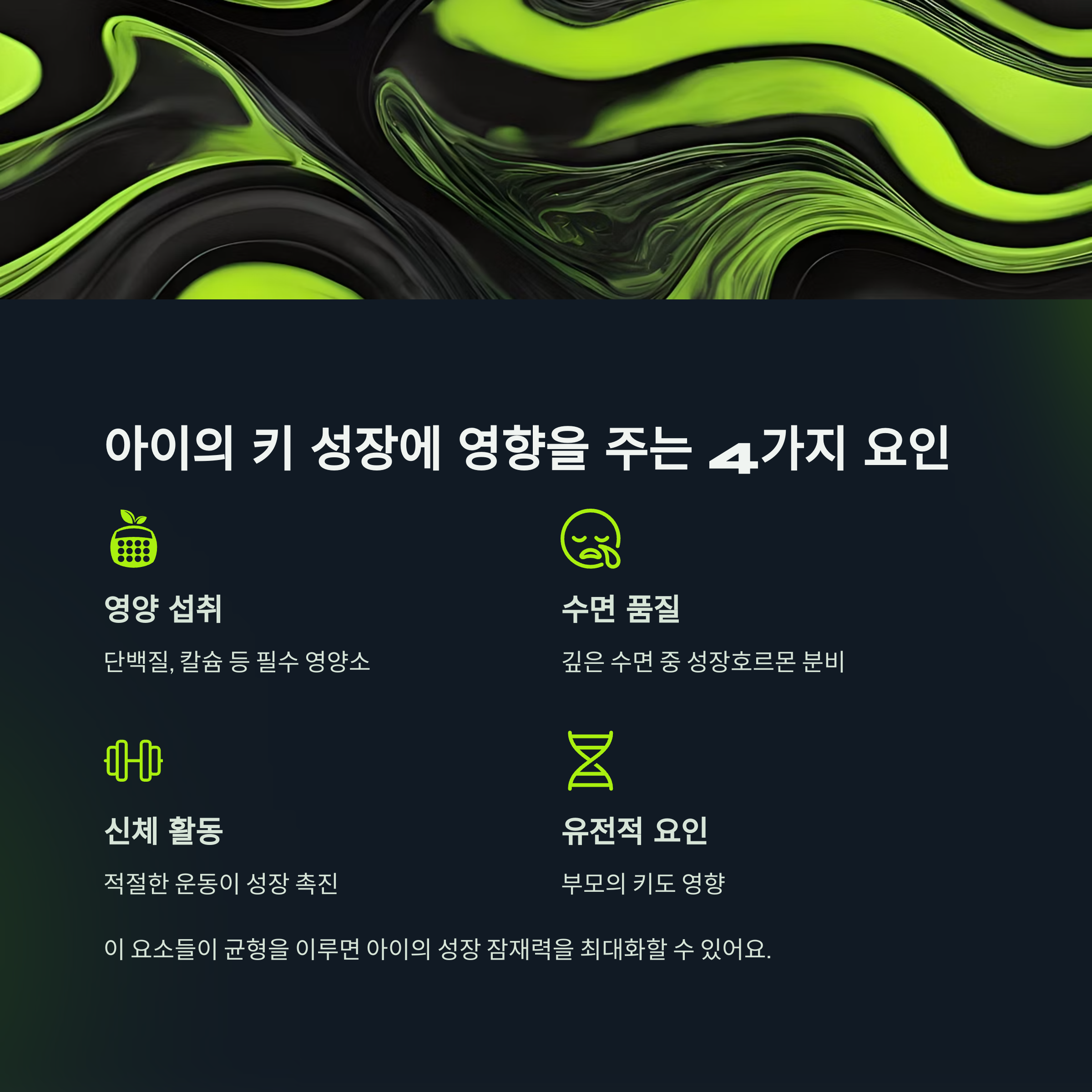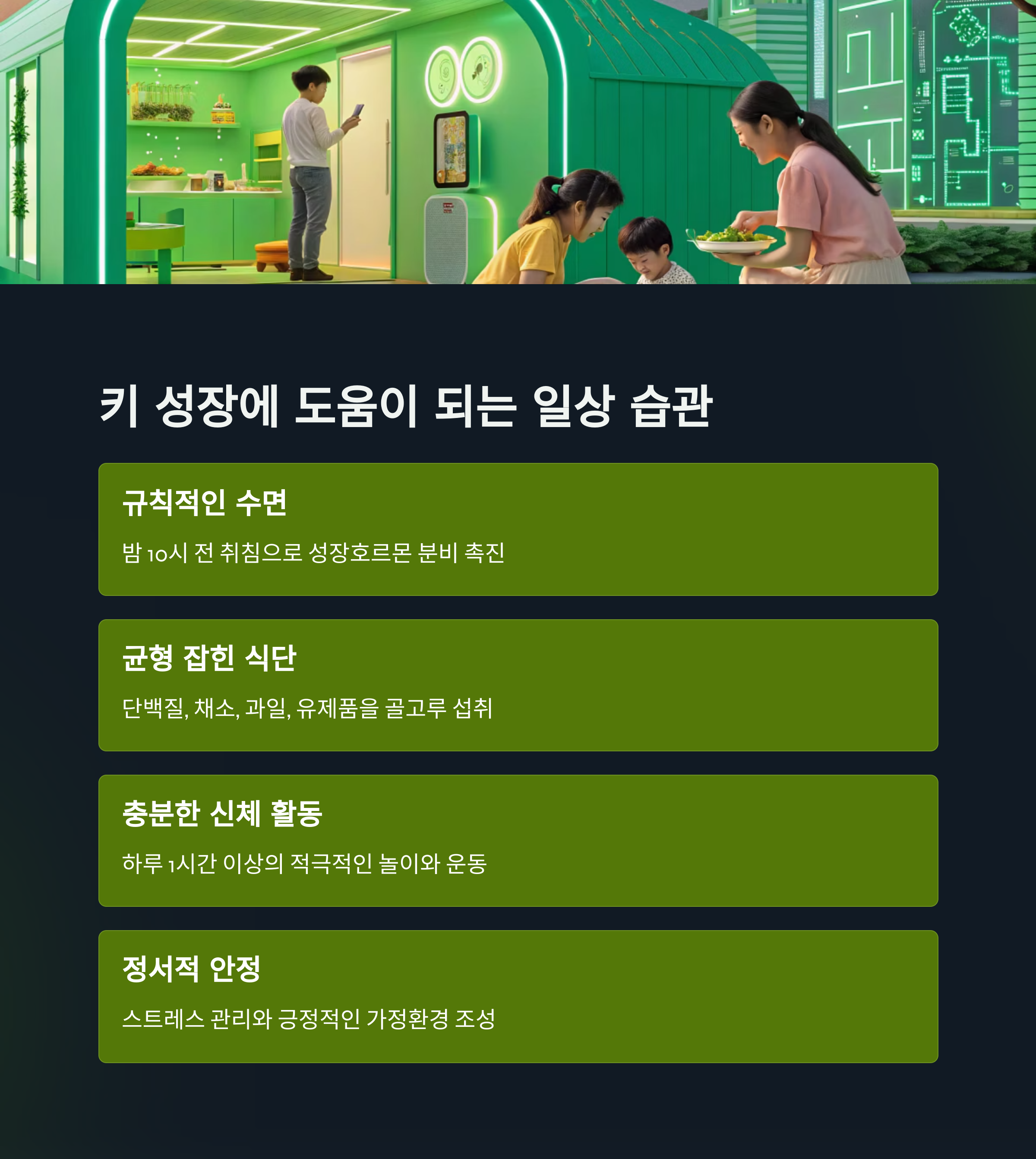 “성장 속도는 유전뿐 아니라 영양, 수면, 운동 등 환경이 큰 영향을 미칩니다.” 🏃♂️🥬