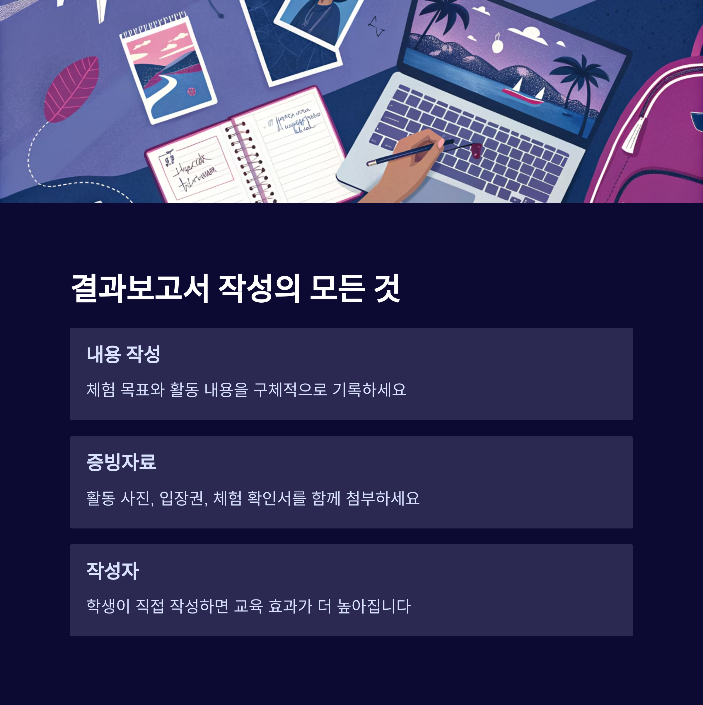 “결과보고서는 단순 후기보다 ‘학습 기록’이어야 합니다.” 📚📷