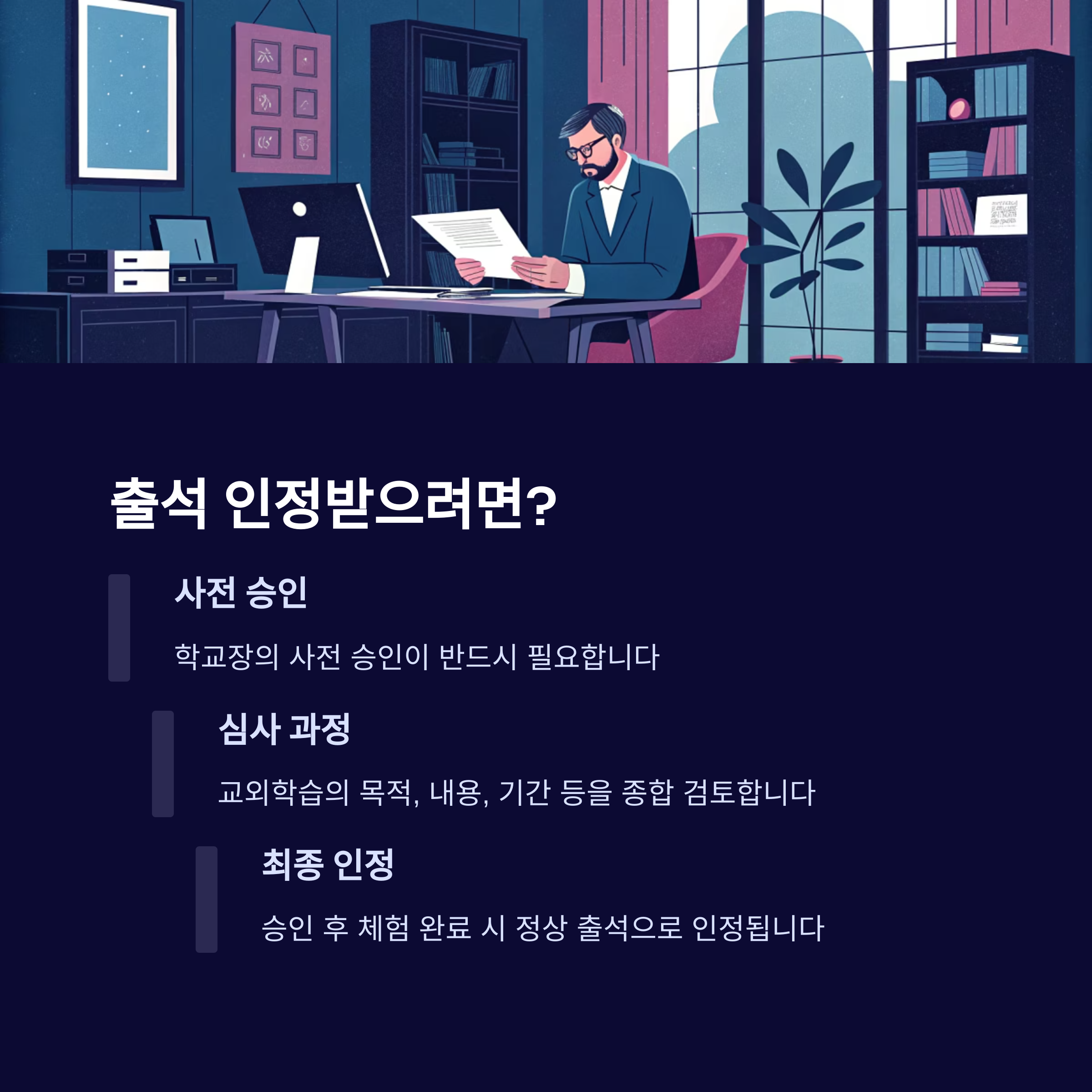 “출석 인정 여부는 학교장의 판단에 달려 있으며, 사전 소통이 필수입니다.” 🧑🏫📥