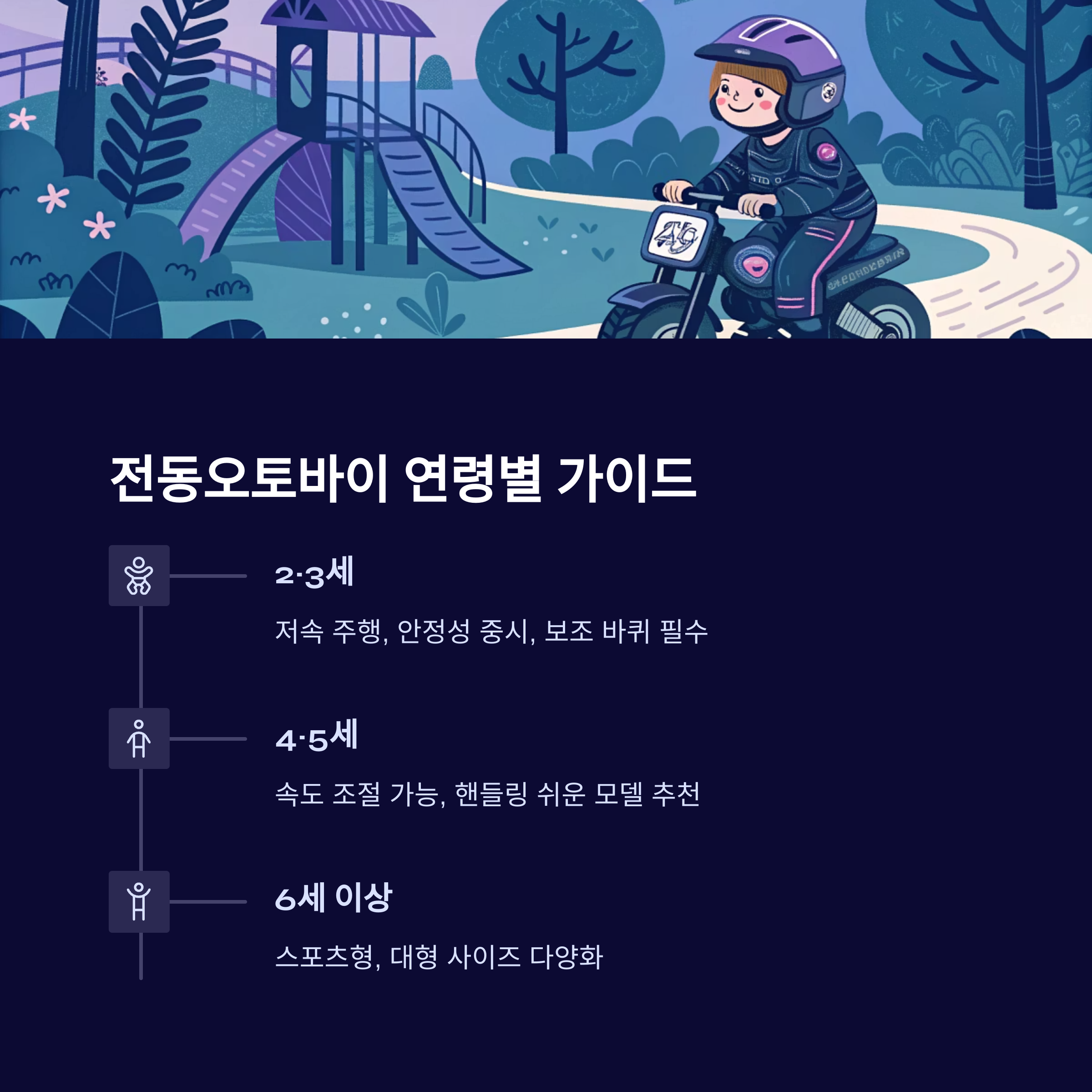 전동오토바이는 3세부터 10세까지 다양한 연령대를 커버합니다.