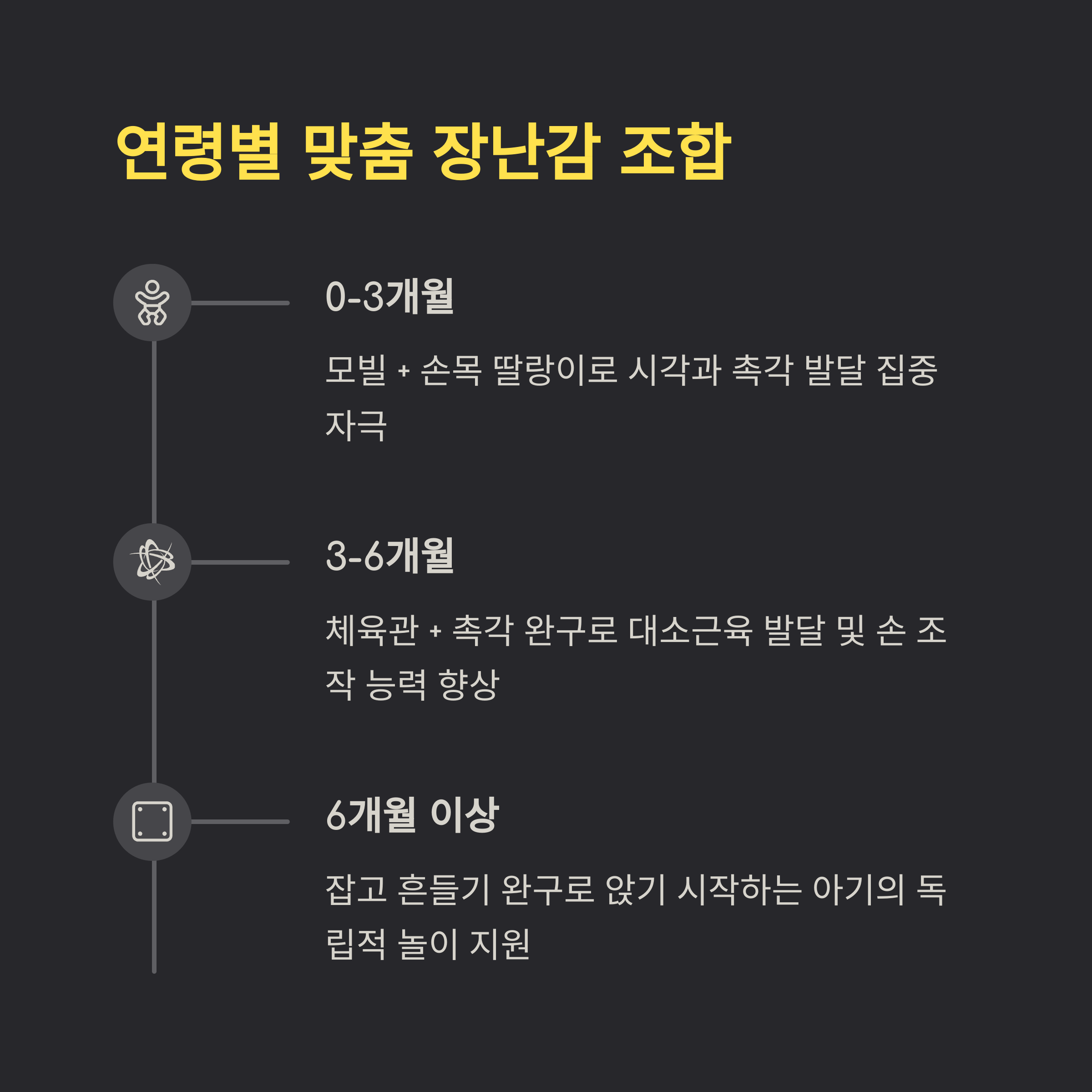 3️⃣ 연령별 발달 단계 반영 - 감각 자극 → 대소근육 발달 → 탐색 및 인지 놀이