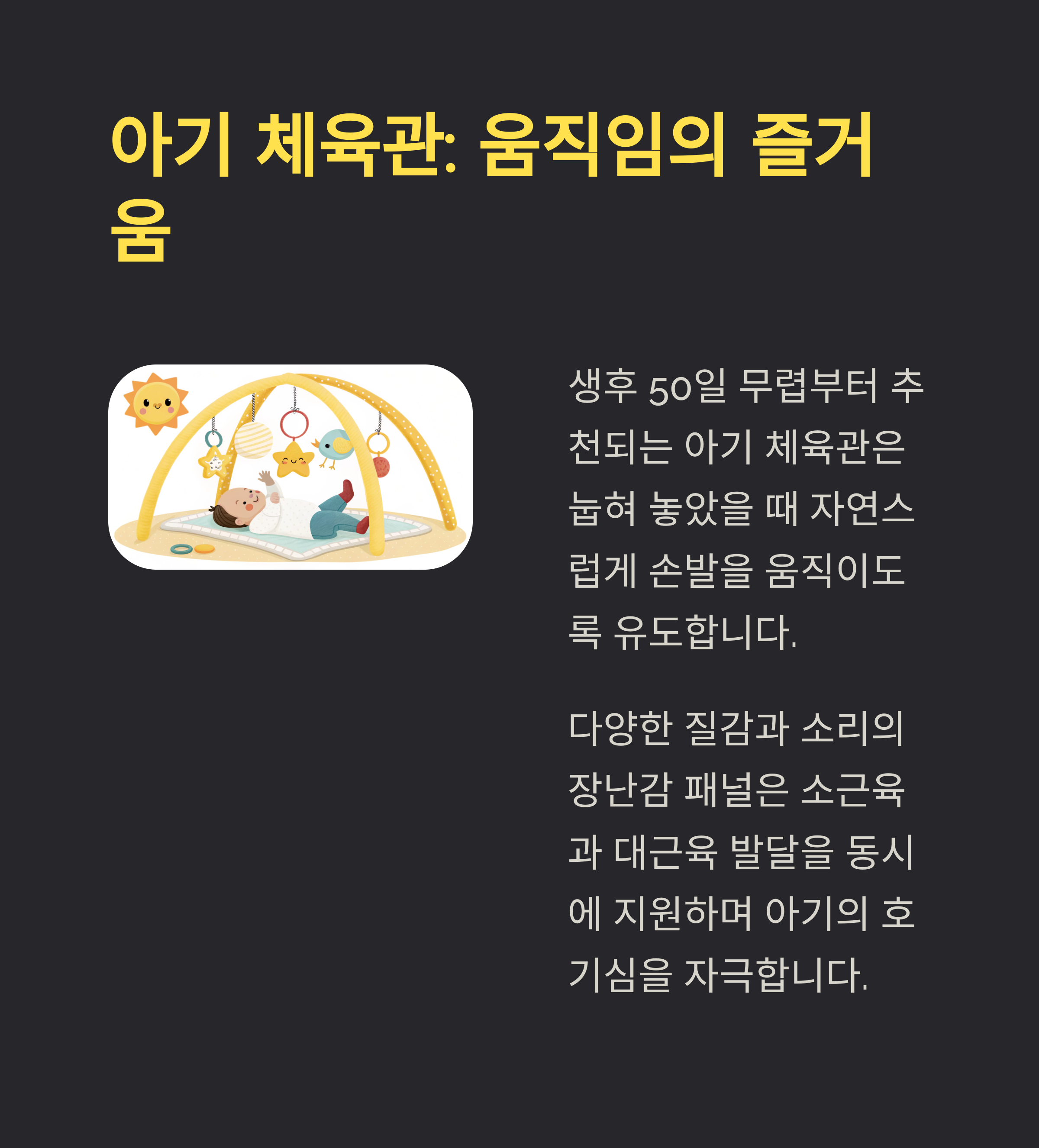| 3~6개월 | 체육관 + 발 피아노 + 거울 |