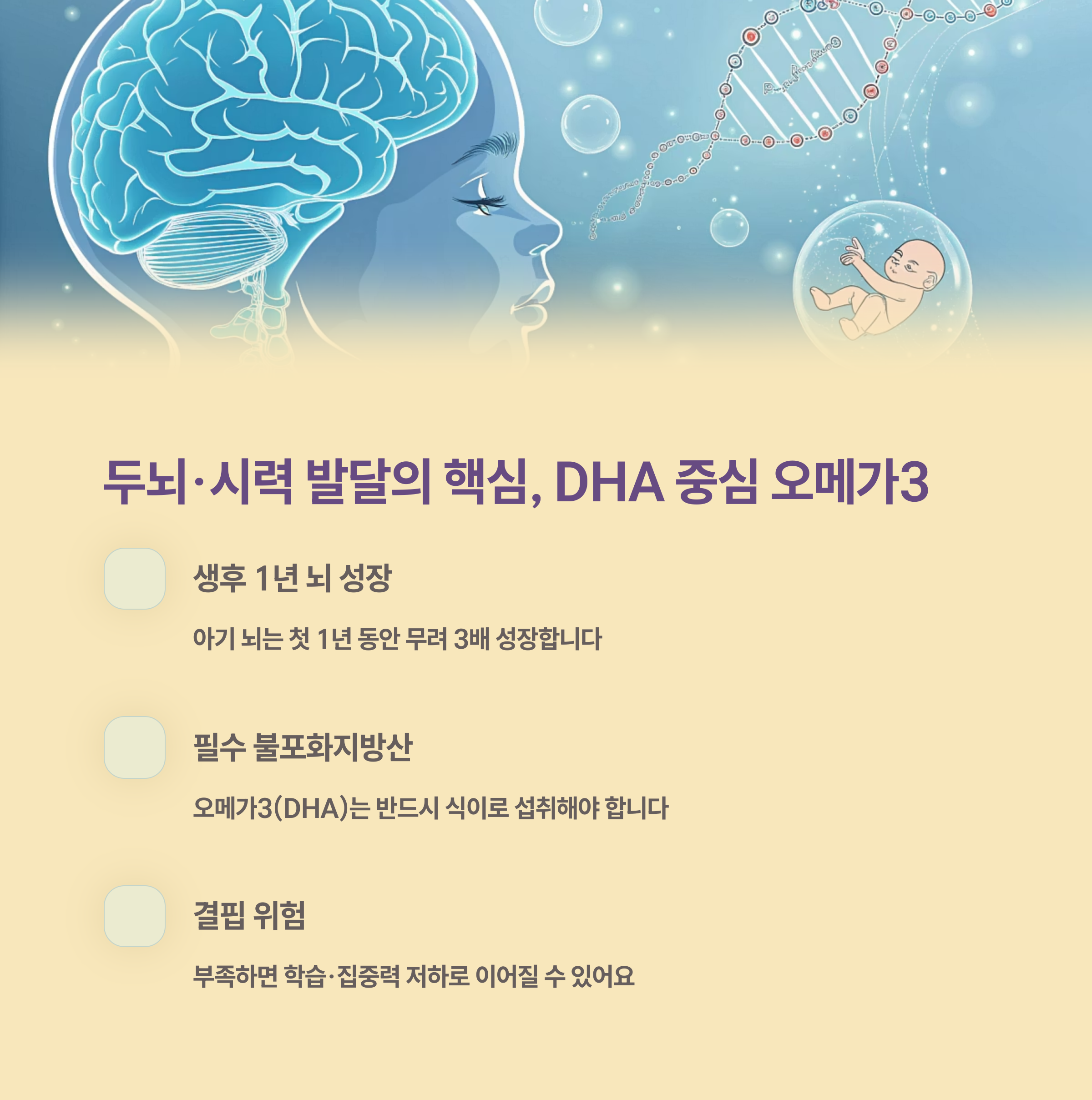 “DHA는 뇌를 구성하는 재료, 매일매일의 뇌 성장에 필요합니다.” 🧠👀