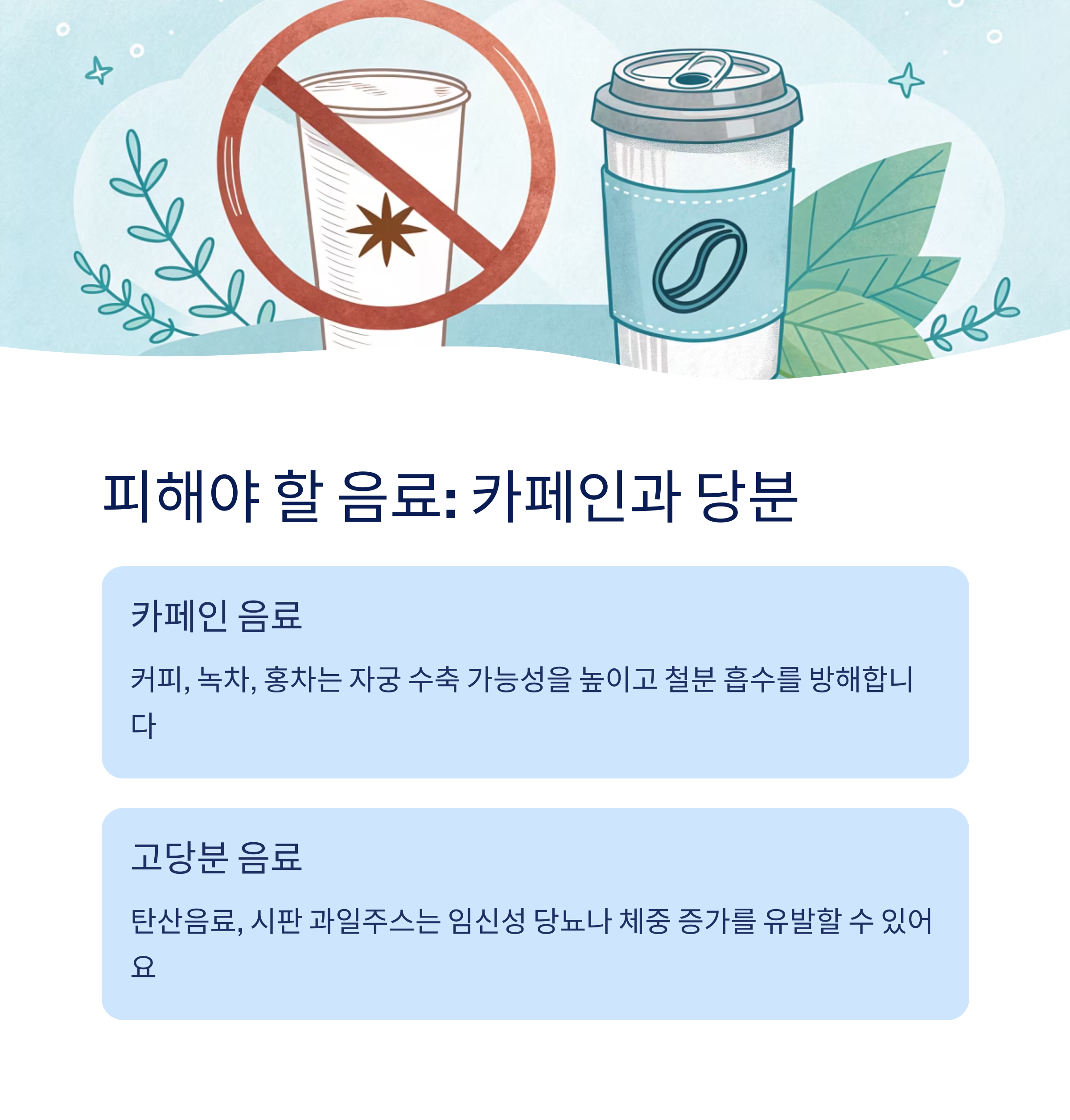 커피, 녹차, 홍차 등 카페인이 포함된 음료는 자궁 수축 가능성을 높이며