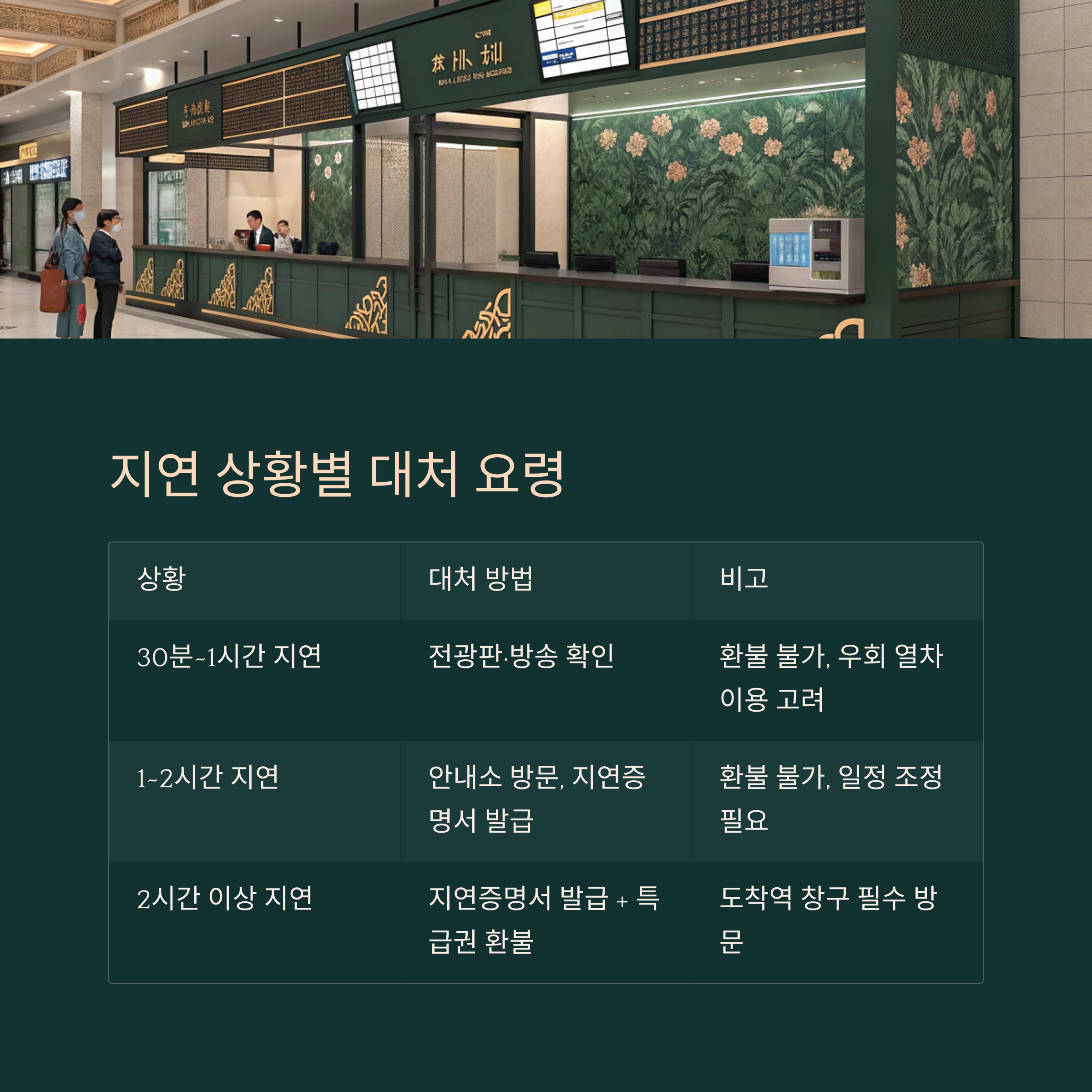 | 30분~1시간 지연 | 전광판·방송 확인 | 환불 불가, 우회 열차 이용 고려 |
