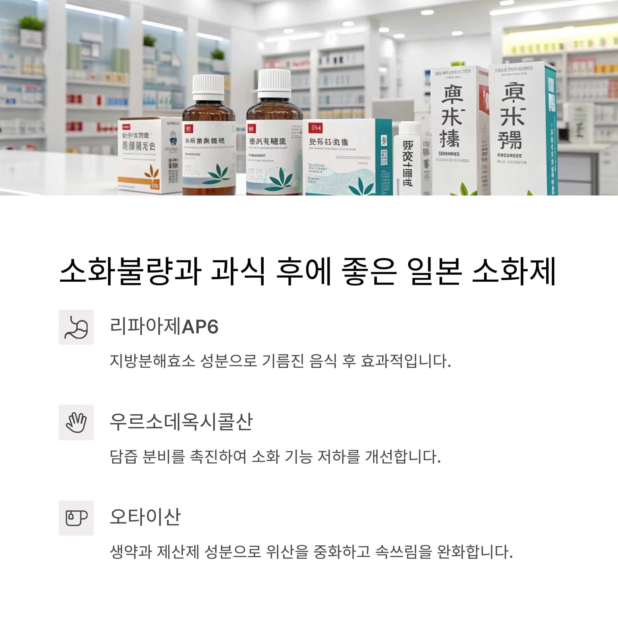 일본 소화제는 지방 분해 효소나 담즙산 유도체 성분이 들어 있어