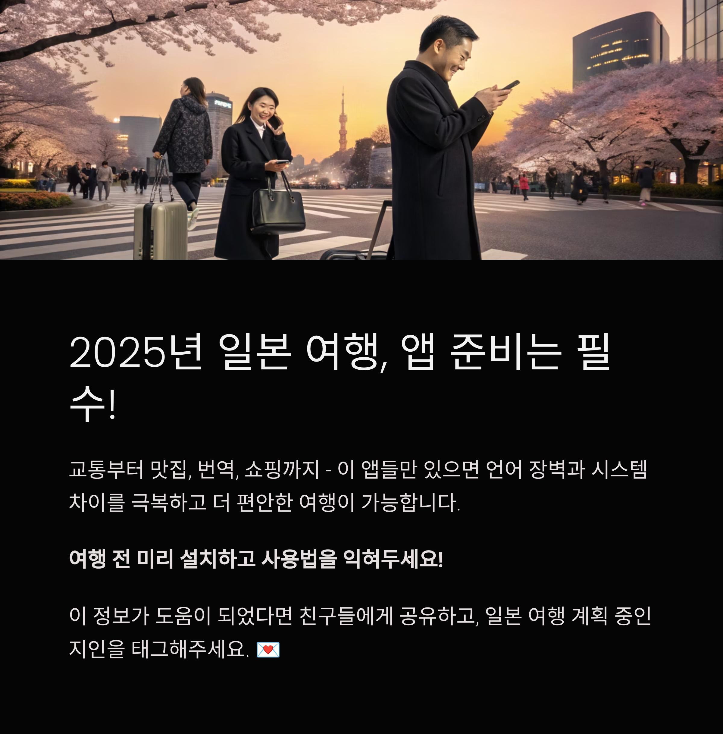 2025년 기준으로 꼭 설치해야 할 교통, 맛집, 번역, 쇼핑, 와이파이 연결, 일정 관리 앱을 정리해 드립니다.