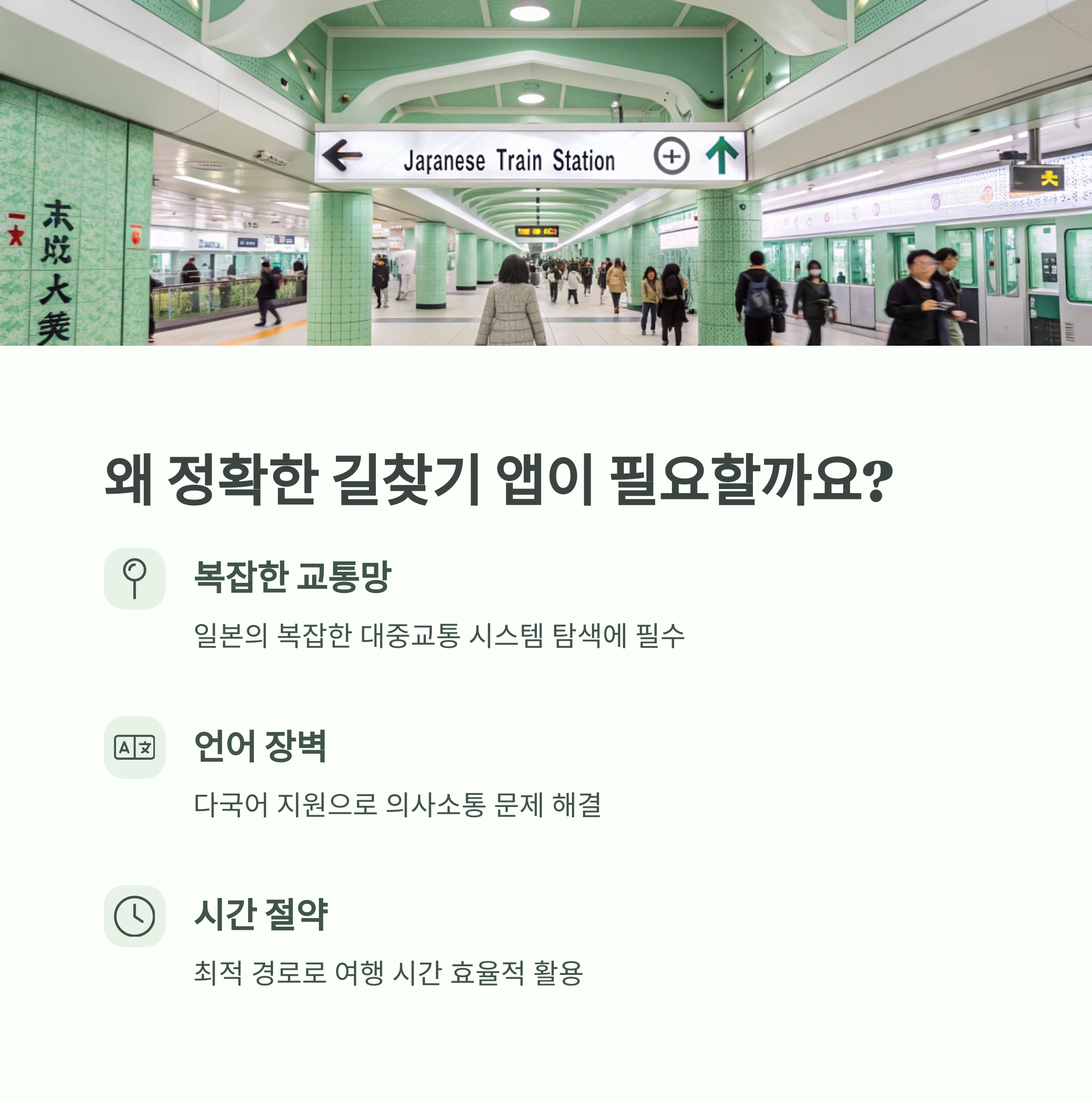 특히 도쿄, 오사카와 같은 복잡한 지역의 경로 안내에 강점이 있습니다.