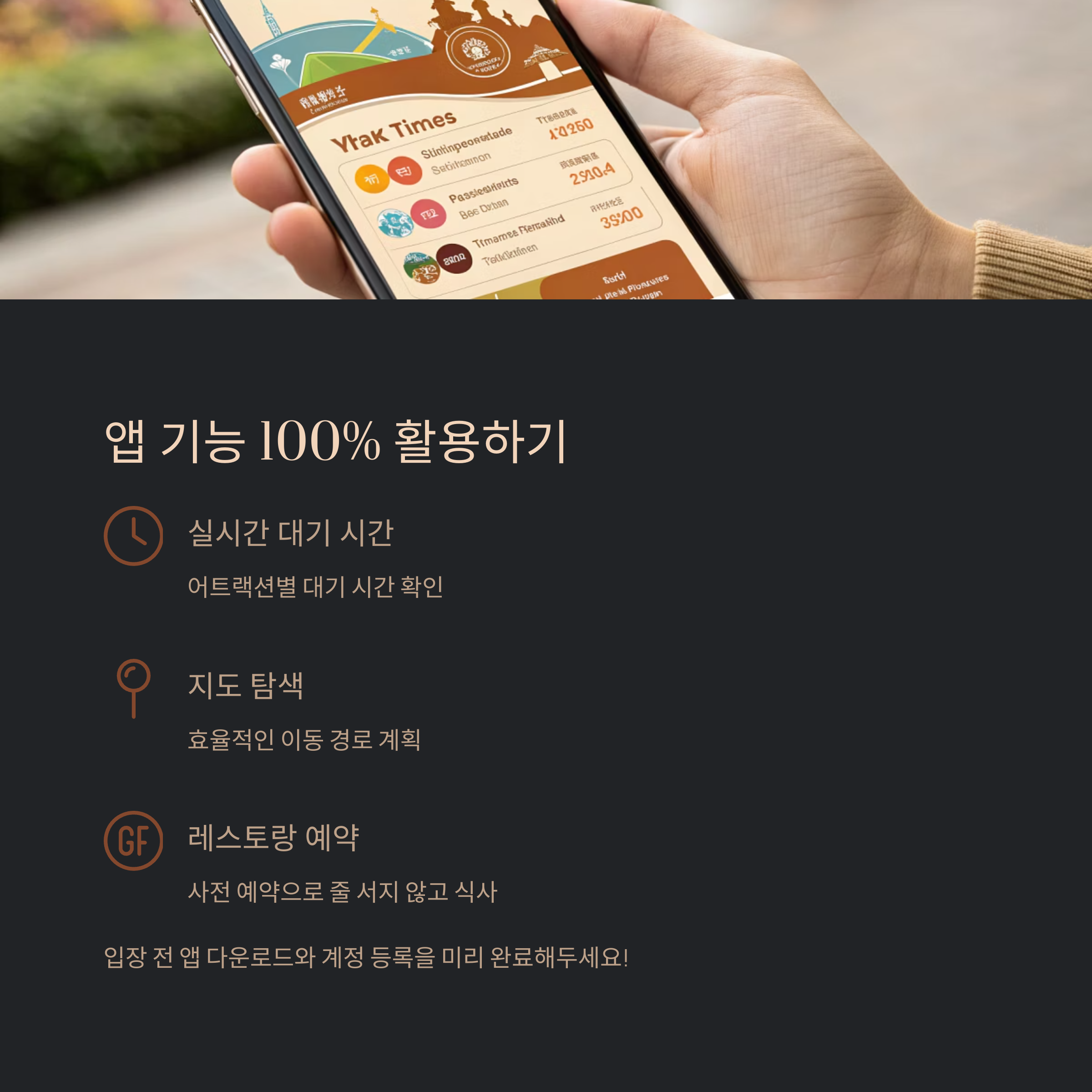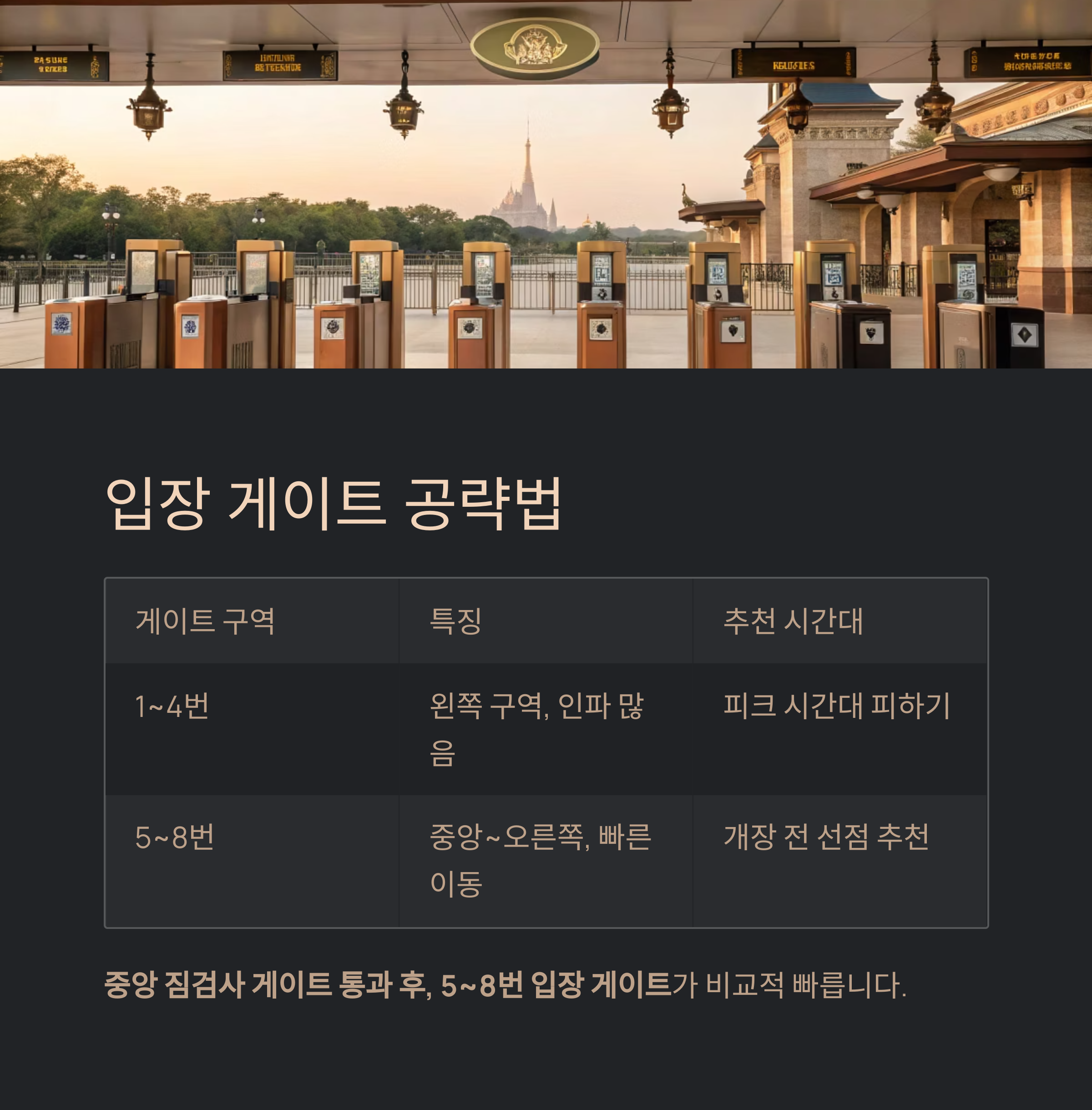 빠른 입장 전략부터 인기 어트랙션 대기 최소화까지 한눈에 확인해보세요