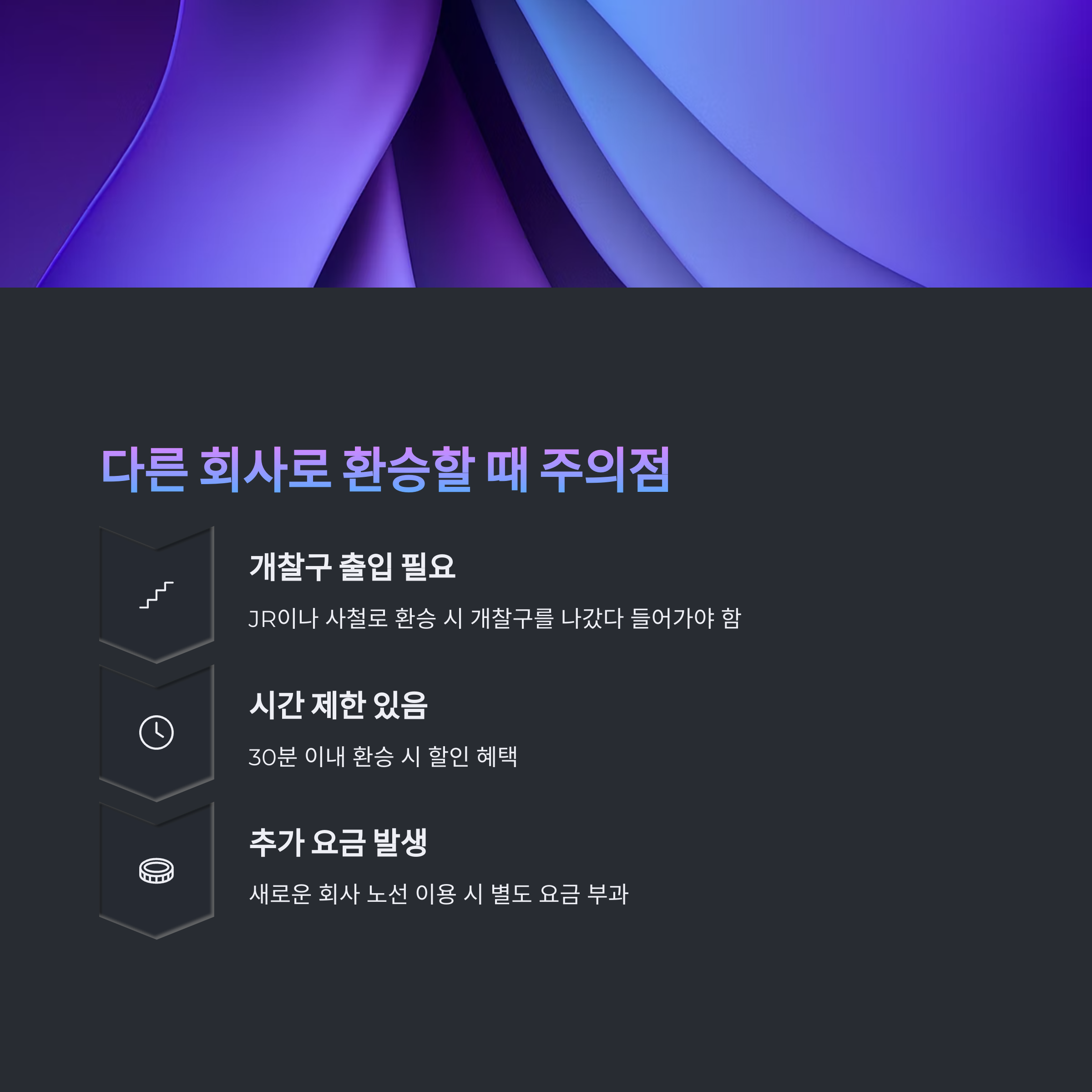 핵심: JR 등 타 회사 환승 시엔 시간 제한과 추가 요금을 꼭 염두에 두세요.