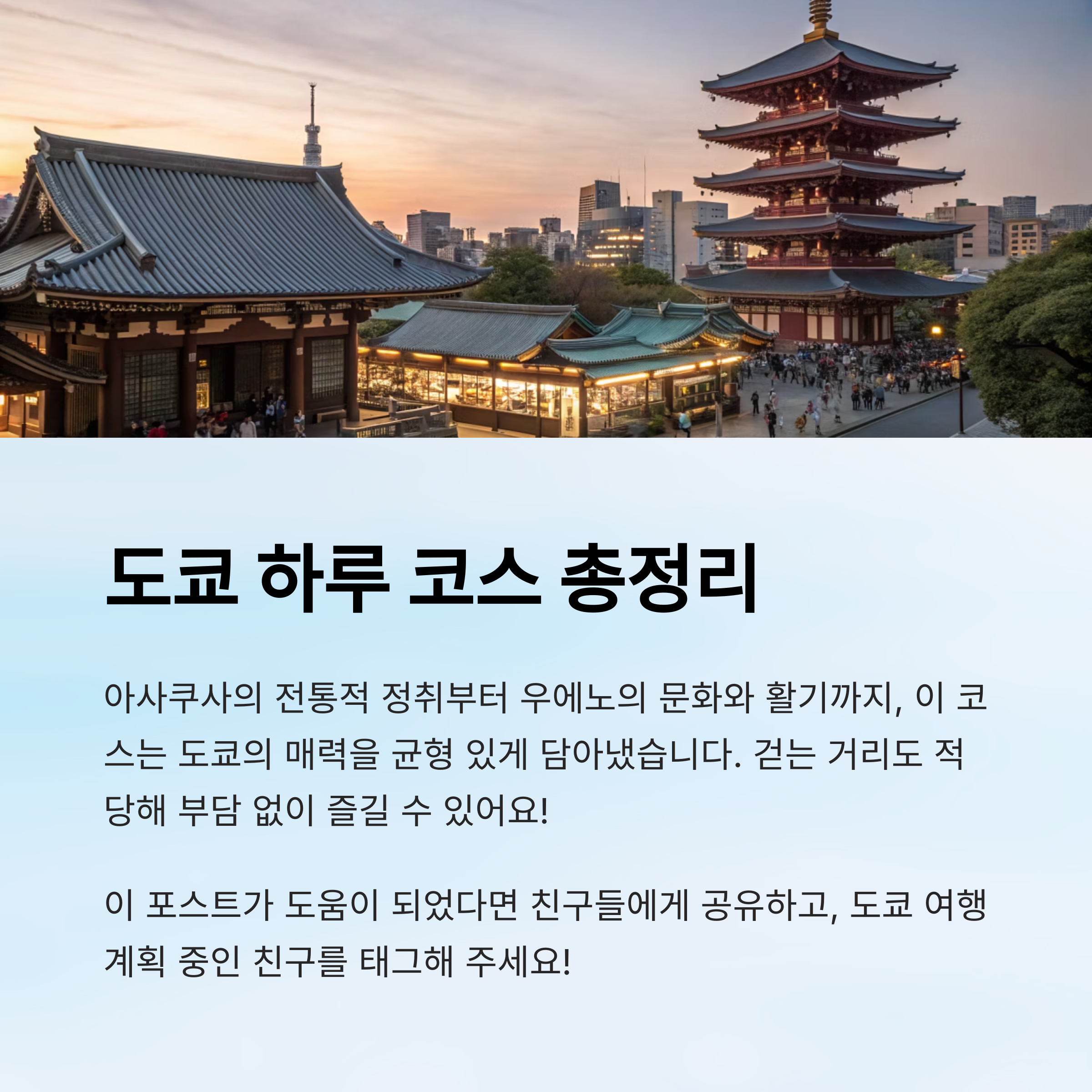 하루 동안 도쿄의 매력을 균형 있게 체험할 수 있는 구성입니다