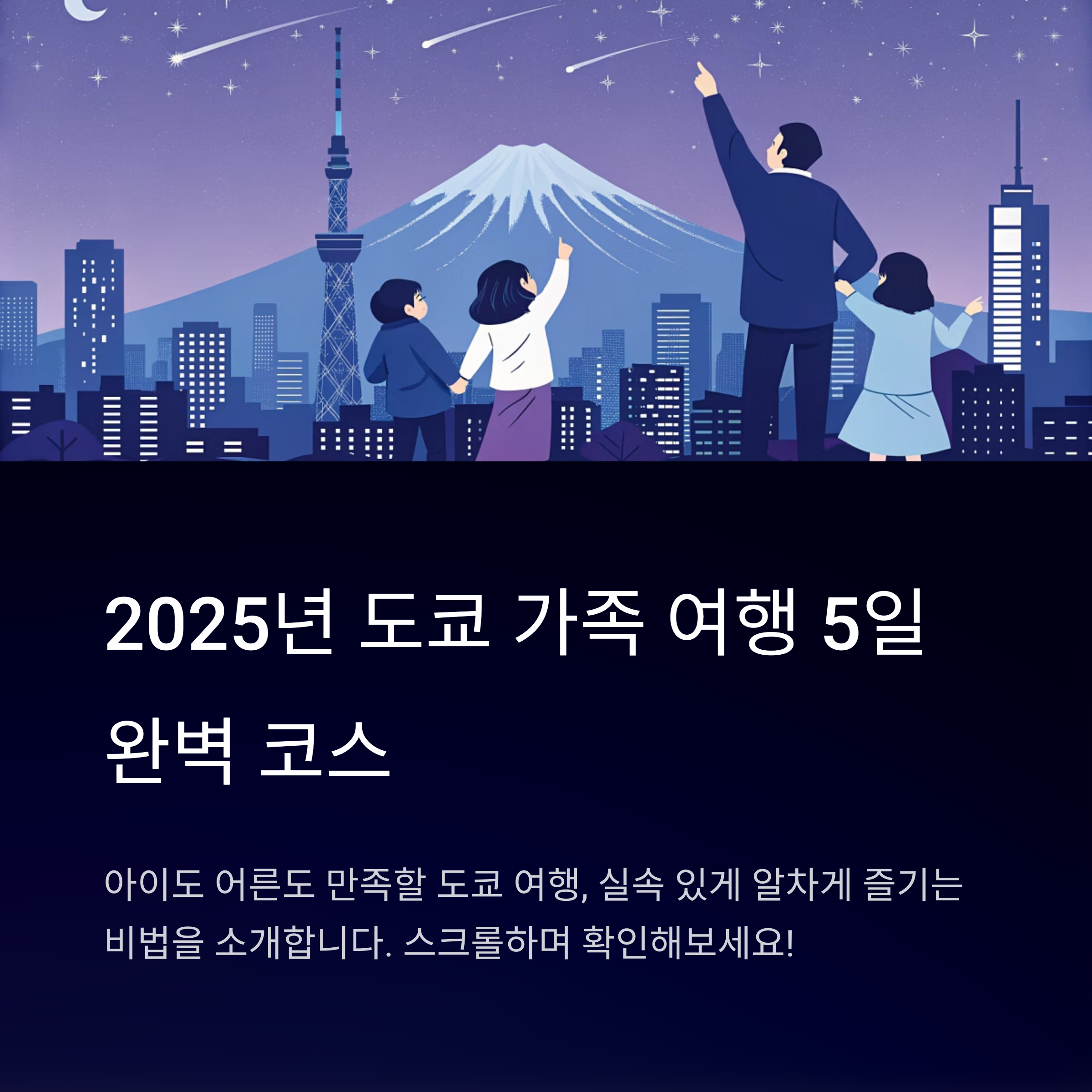 이번 글에서는 2025년 최신 트렌드에 맞춰 안전하고 재미있는 도쿄 가족 여행 5일 코스를 소개합니다.