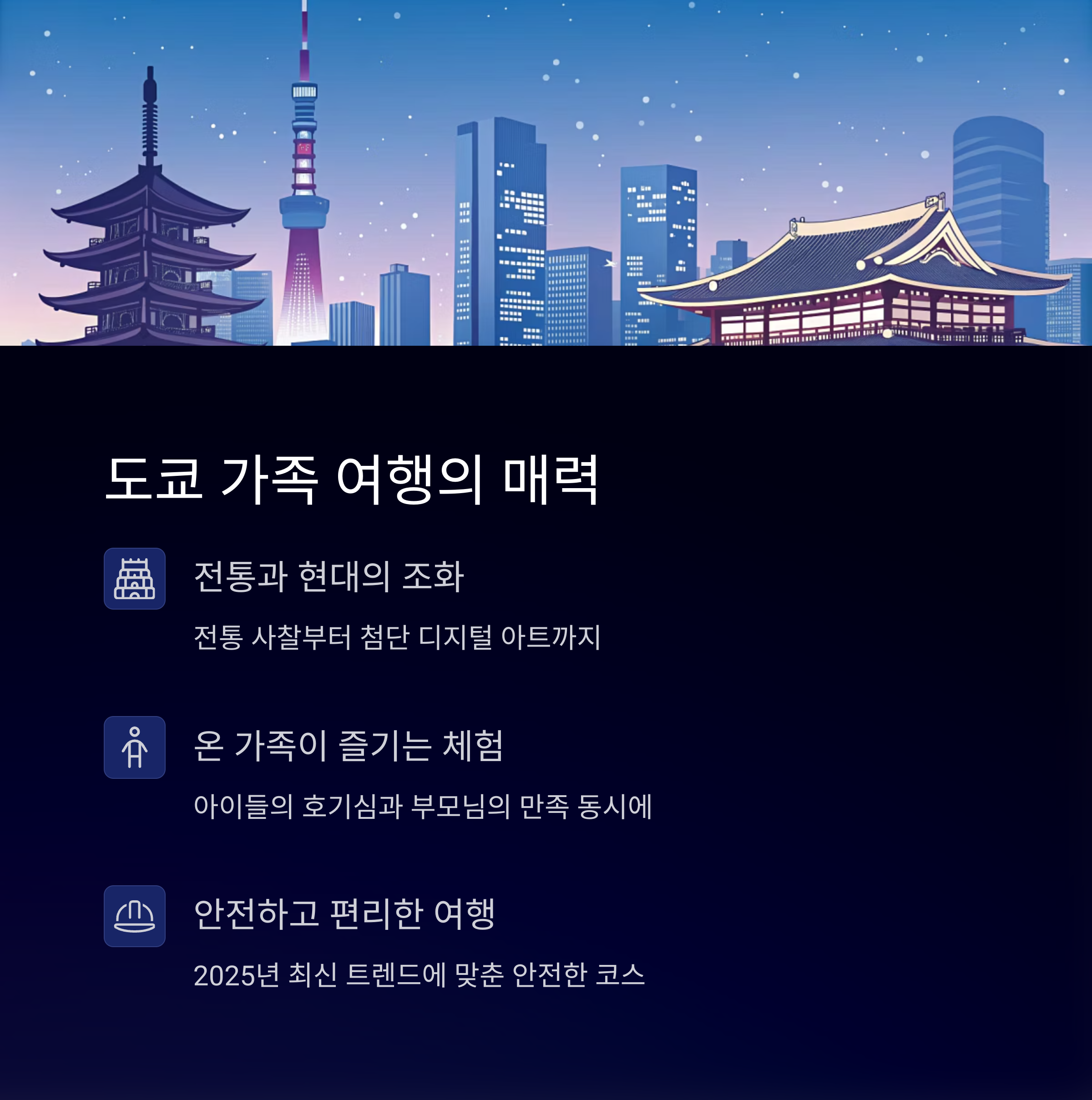 도쿄 가족 여행은 안전성, 다양성, 체험 중심 구성이 중요합니다.