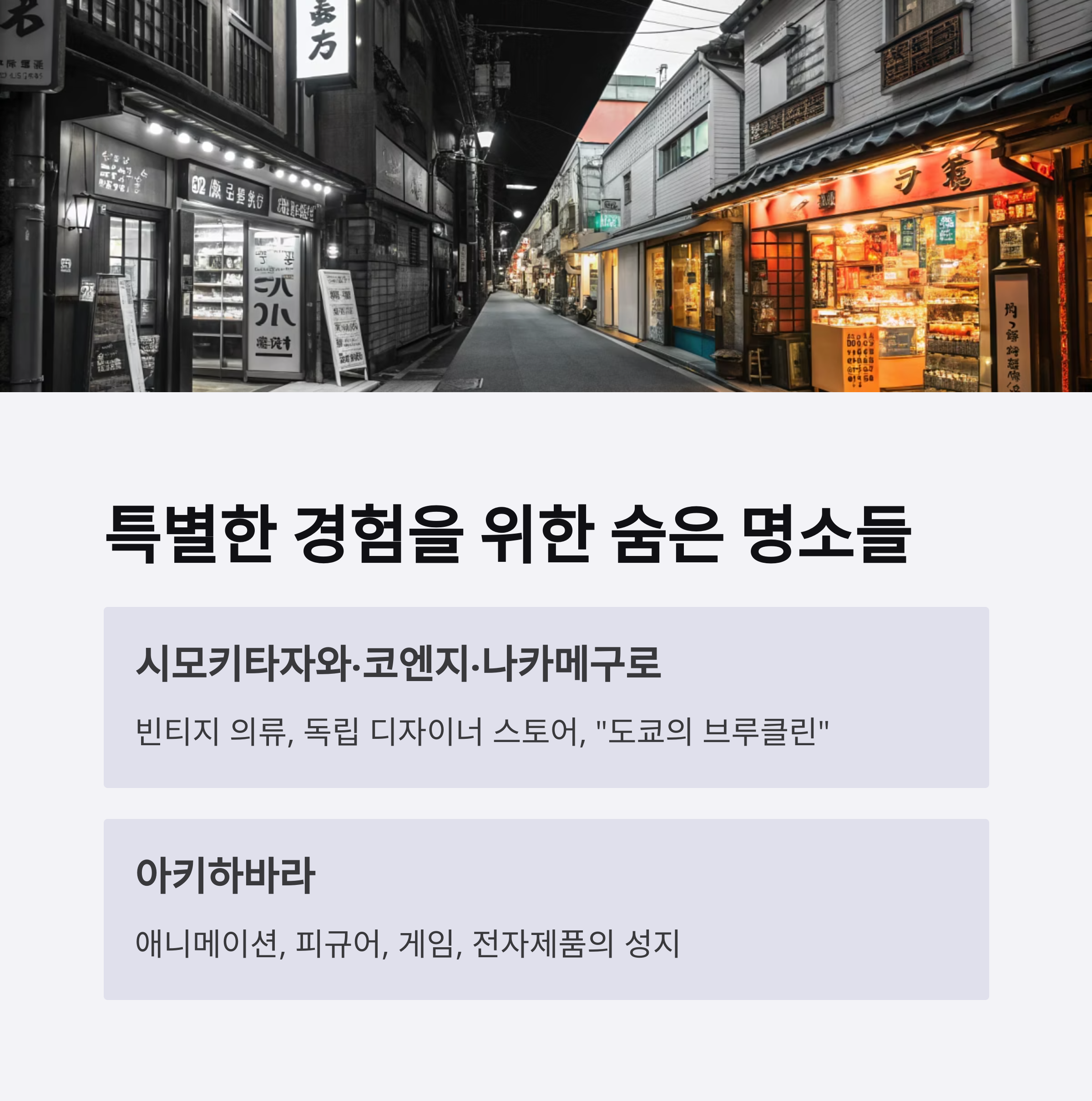 | 시모키타자와 외 | 빈티지, 인디 감성 | 감성 여행자, 특별함 추구 |