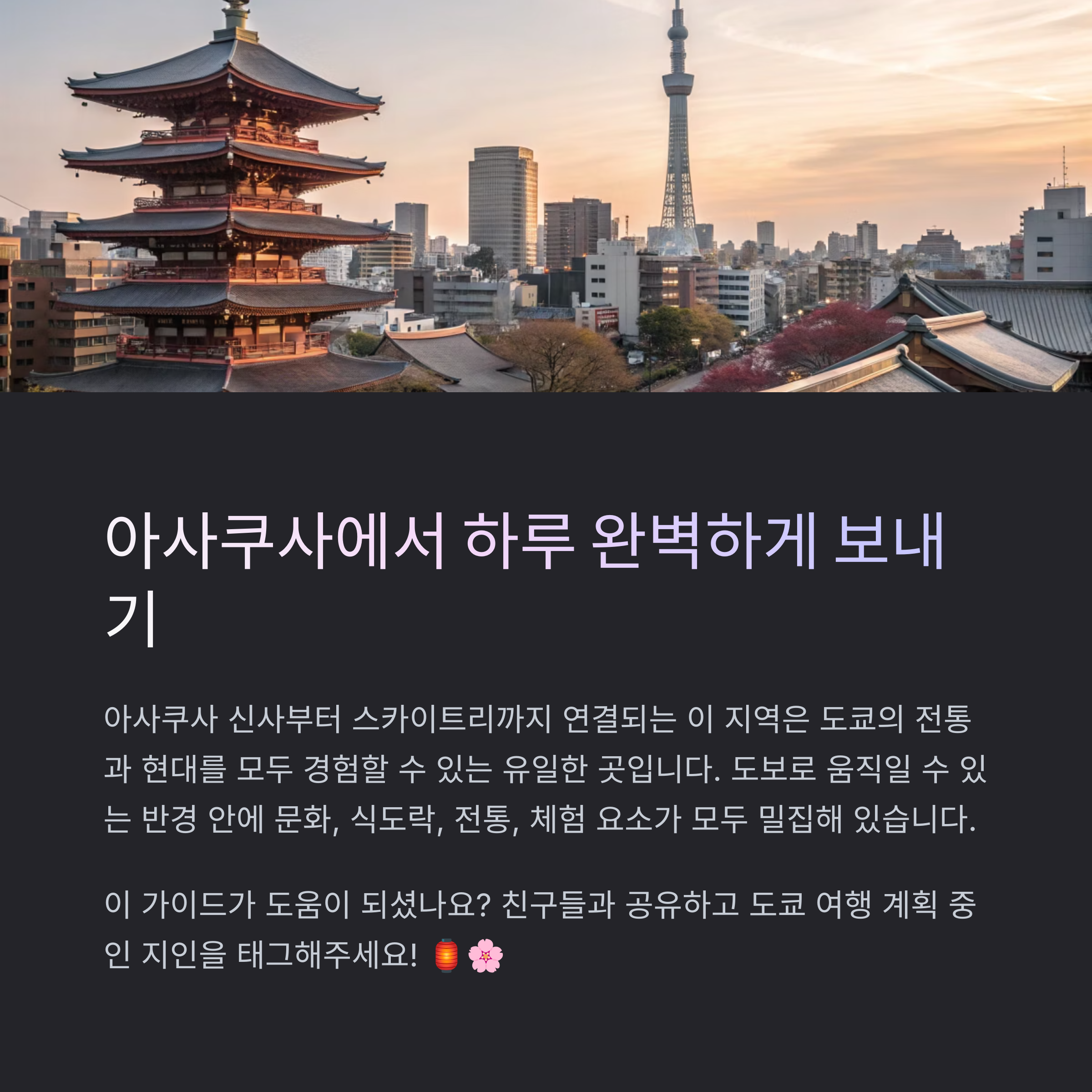 | 도쿄의 전통과 현대를 잇는 산책: 아사쿠사~스카이트리 도보 여행 코스 (2) | 2025.06.02 |