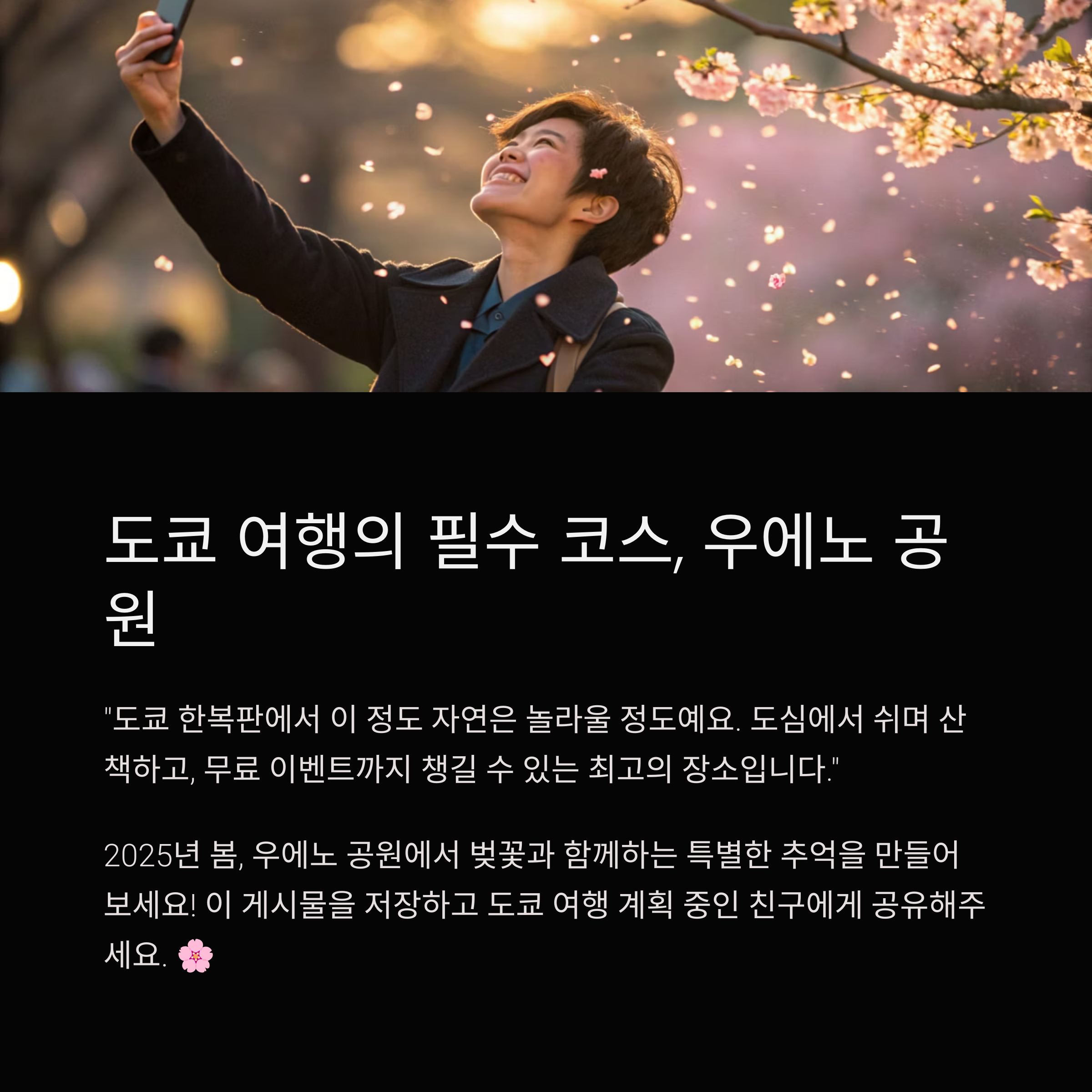 도쿄 도심 한복판에서 자연과 전통, 축제를 모두 만날 수 있는 장소, 바로 우에노 공원(上野公園)입니다.