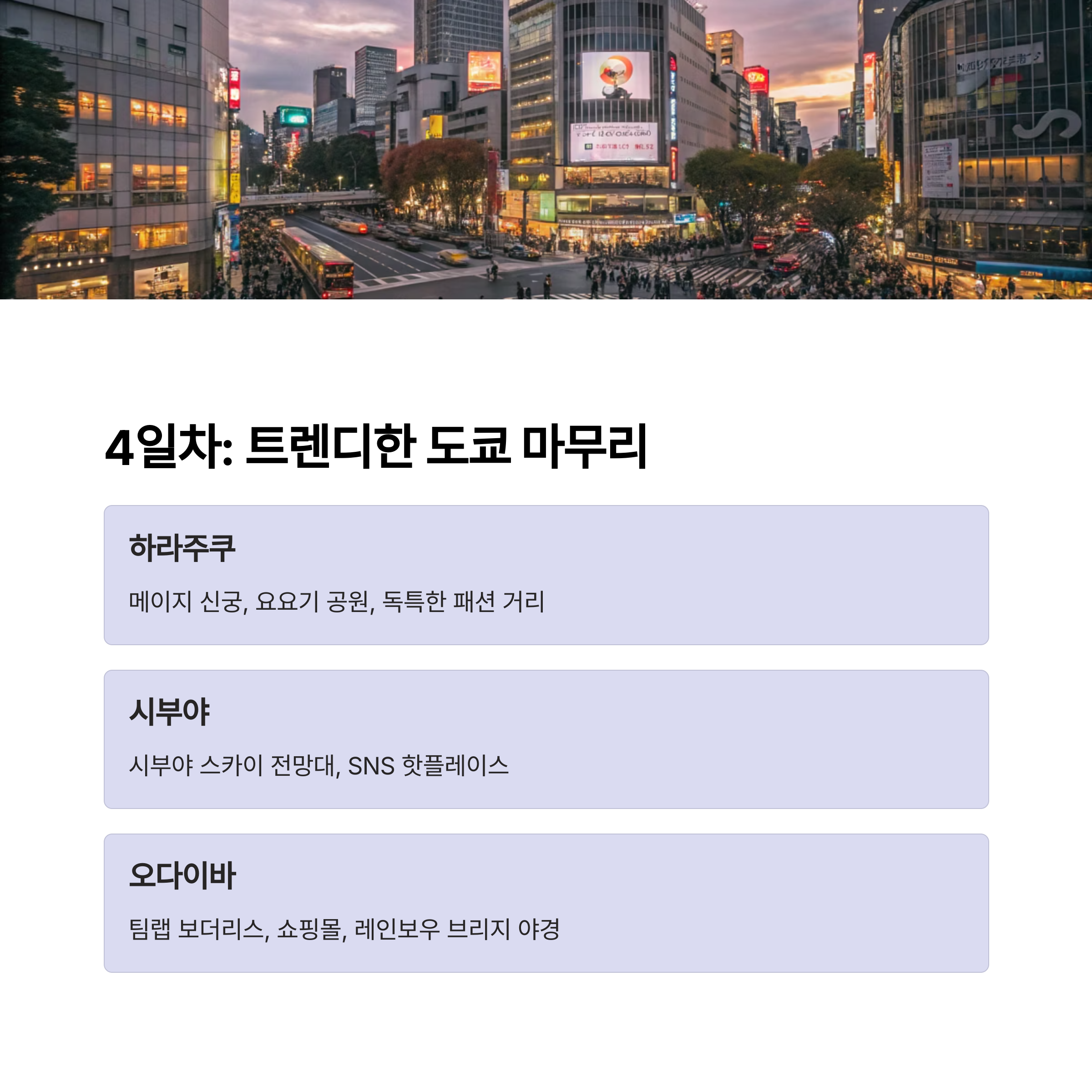 4일차: 하라주쿠시부야오다이바, 감성과 쇼핑의 마지막 하루